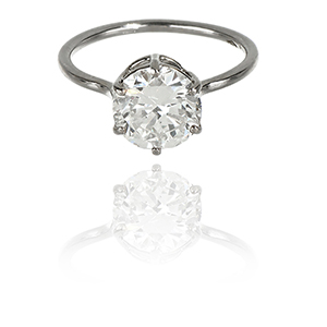 Anello in oro bianco al centro diamante taglio brillante di ct. 2 25 ca. dimensioni 8 55 x 8 39 x 5 05 mm fluorescenza lieve.