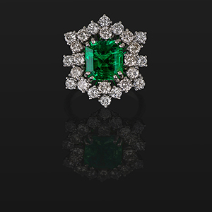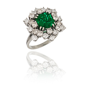 Anello in oro bianco anni 50 con stupendo smeraldo minor oil Colombia di 2 75 ct di forma ottagonale square taglio a gradini.