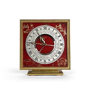 LUXOR - Orologio da scrivania in ottone con funzione 'Le ore del mondo'. quadrante con smalto rosso inciso.