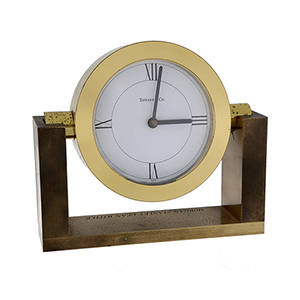 TIFFANY & Co. - Orologio da tavolo in ottone anni '90 con movimento al quarzo quadrante bianco indici ai quarti romani funzione solo tempo.