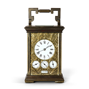 LA VALLEE - Pendola da tavolo in bronzo dorato con quadrante inciso a mano funzione di calendario e svegliarino.