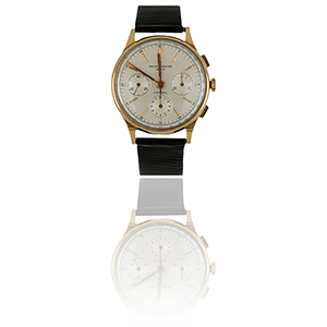 BAUME ET MERCIER - Raro orologio da uomo in oro giallo con cinturino in pelle movimento meccanico a carica manuale con funzione di cronografo a 3 contatori.