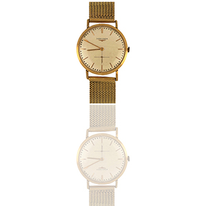 LONGINES - Orologio da uomo in oro giallo con movimento meccanico a carica manuale solo tempo con piccoli secondi ad ore 6 indici applicati a barretta sfere a bastone fondello a pressione bracciale a maglia intrecciata.