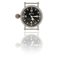 Quadrante nero con indici luminescenti a numeri arabi nei punti cardinali grande corona di carica sul lato sx.