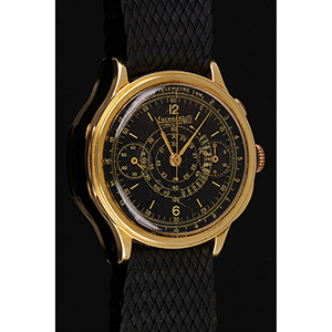 EBERHARD & Co - Cronografo da polso modello pre Extra-Fort metà degli anni 30. Cassa in oro 39.5 mm con doppia cerniera e vetro plexiglass. Stupendo black dial originale gilt con scala telemetrica e tachimetrica pulsanti ad oliva. Movimento meccanico a carica manuale firmato Eberhard cal 16'' seriale n°26249. cinturino non originale al momento funzionante