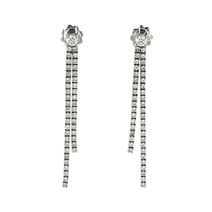 Orecchini pendenti a cravattino in oro bianco composti da due fili di diamanti di forma rotonda taglio a brillante per totali stimati 1 51 ct.