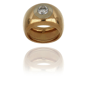 POMELLATO - Anello a fascione in oro rosso e bianco alla sommita' un diamante taglio brillante di ct. 0 86 incassato battuto.