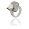 Anello in oro bianco a raffigurare un fiore con perla coltivata australiana di 10 50 x 9 71 mm e grande pavè di diamanti per stimati 2 40 ct piccolo bordo in zaffiri.
