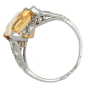 Anello primi del '900 con zaffiro orange di forma rettangolare taglio a gradini di 8 ct stimati. Misure (11 14 x 9 21 x 7 23 mm) la gemma risulta priva di trattamenti da riscaldamento.