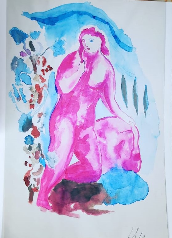 Sandro Chia (Firenze 1946). Senza titolo, 2005. Acquarello su carta. Firmato in basso a destra. Entro cornice. L'opera è accompagnata da Autentica su fotografia. Numero di archivio 20722. Cm. 47x31.