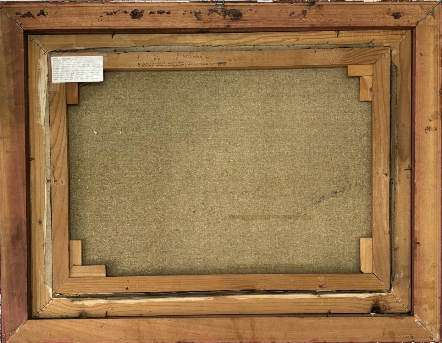 firma in basso dx, il dipinto è stato restaurato nel 1991, ad oggi presenta alcune imperfezioni dovute al tempo