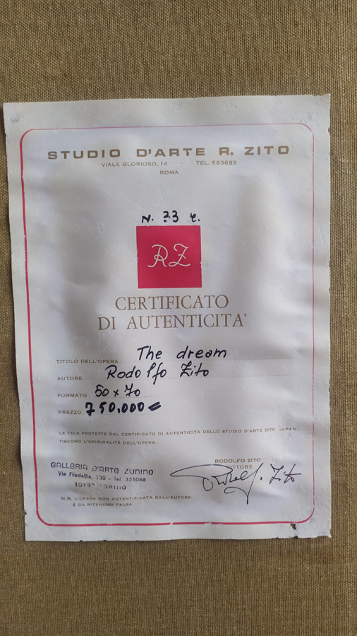 firma dell'artista con certificato