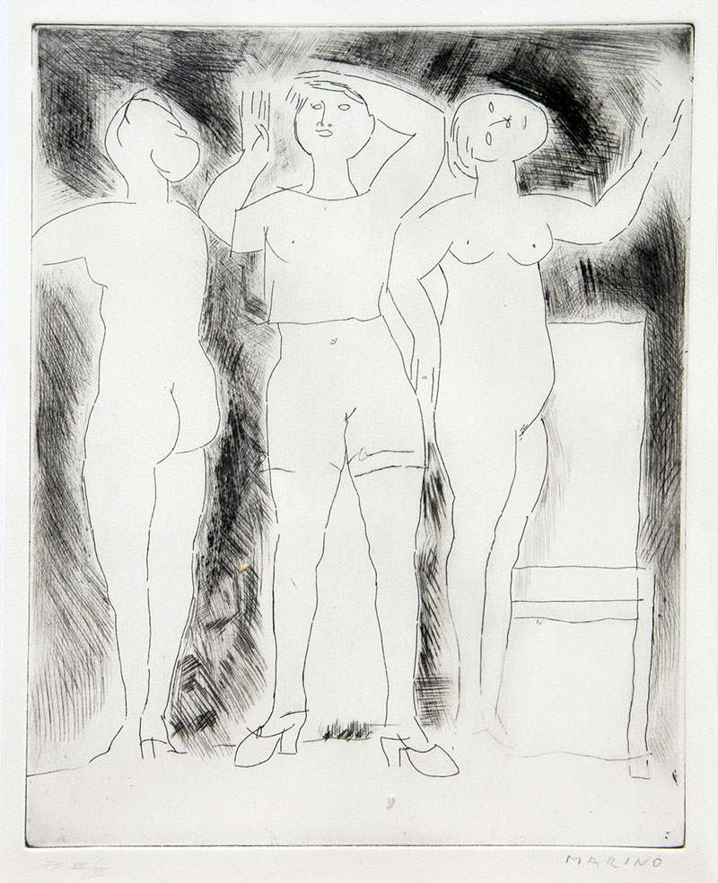 MARINO MARINI Pistoia 1901 – Viareggio 1980 IDEA DELLA VERGINITÀ, 1969 Acquaforte e puntasecca su lastra di zinco, 35 x 45 cm Firmato, numerato (13 / 20). Bibliografia: Marino Marini, Catalogo ragionato dell’Opera grafica (Incisioni e Litografie) 1919 – 1980, a cura di Giorgio e Guido Guastalla, Edizioni Graphis Arte, Livorno 1990, n. A 96, p. 71, illustrato