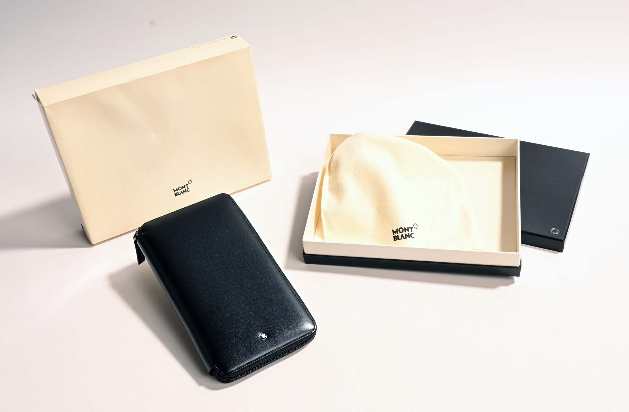 Montblanc Meisterstuck Travel Wallet Pocket & coin case in pelle nera 16352 cm 23x13x3 Come nuovo. Mai usato. Fondo di negozio. Con cartellino, entro dusty bag, astuccio e scatola di cartone originali