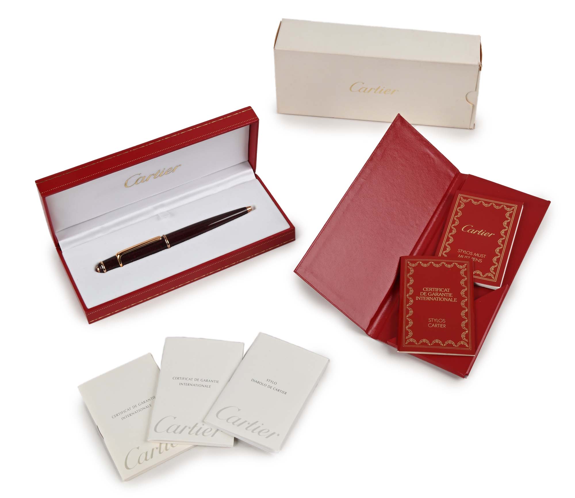 Cartier Diabolo - Penna a sfera in vernice bordeaux effetto marmorizzato con...