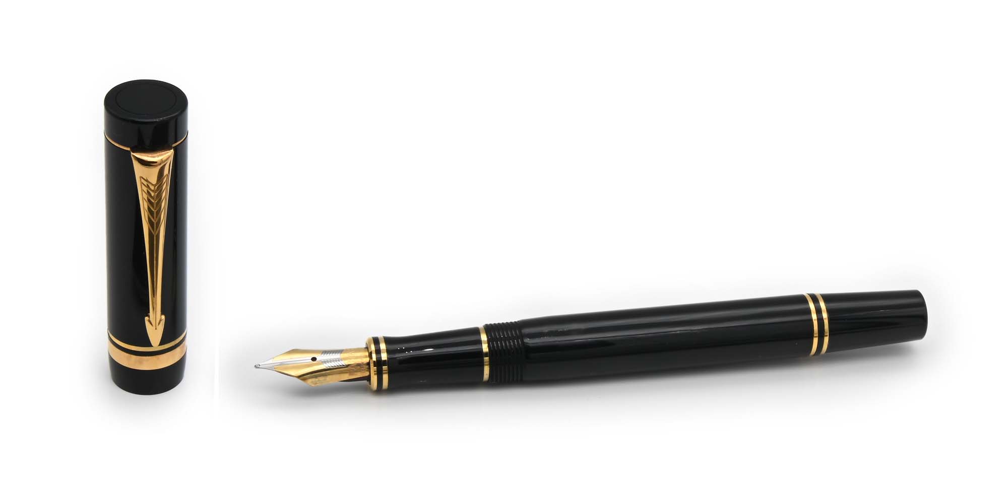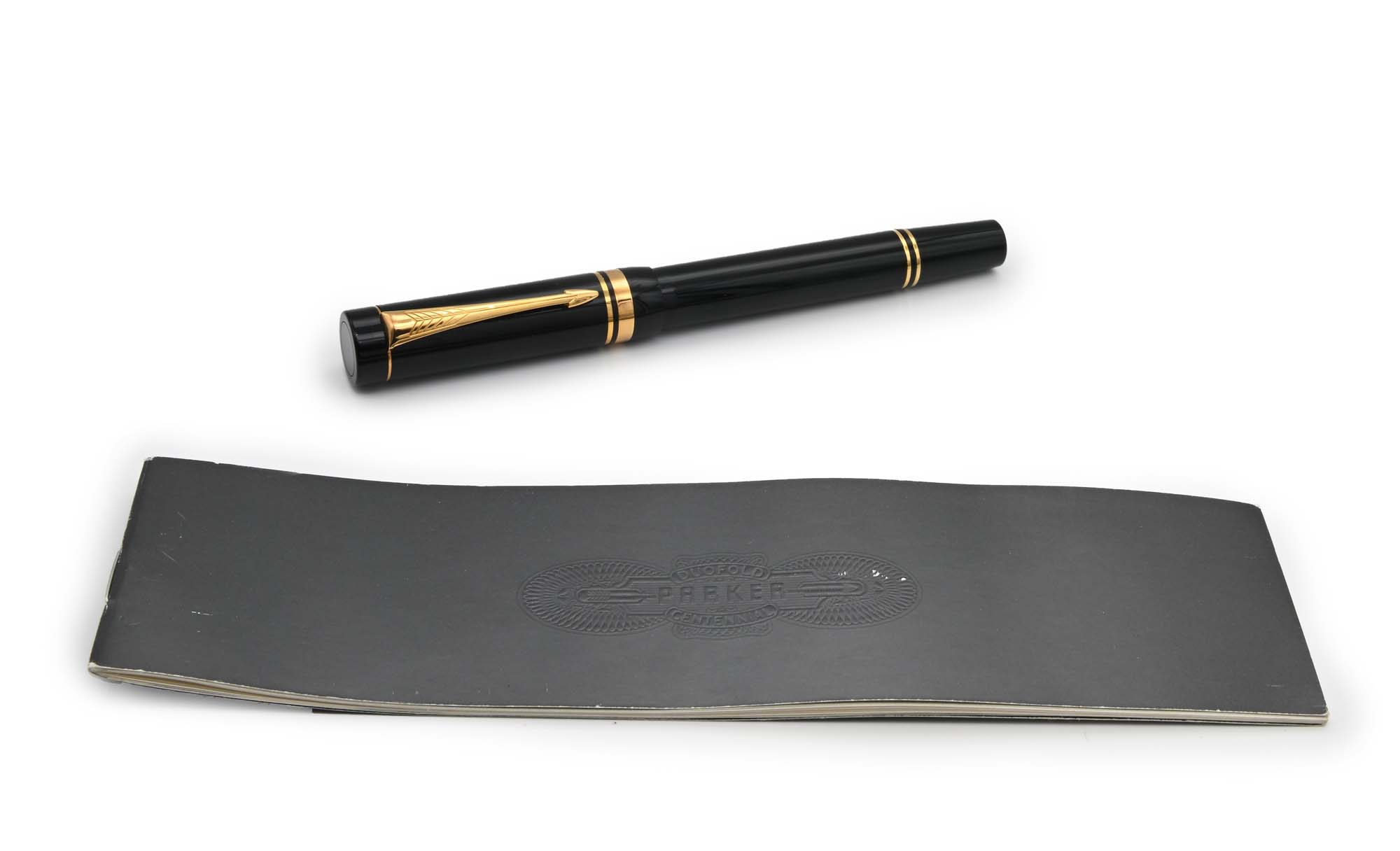 Parker Duofold Centennial - Penna stilografica in vernice nera con particolari dorati Pennino X in oro giallo 18 Kt e riportato in rutenio. Con Certificato di garanzia ed istruzioni originali