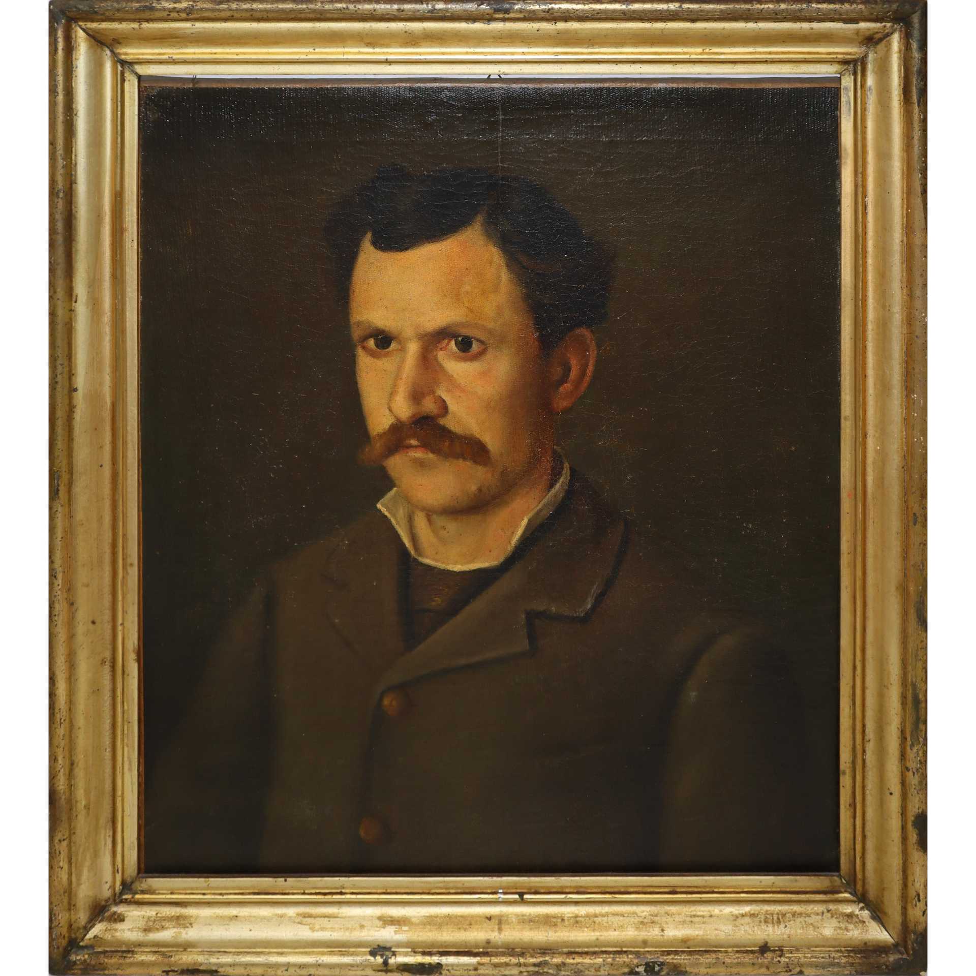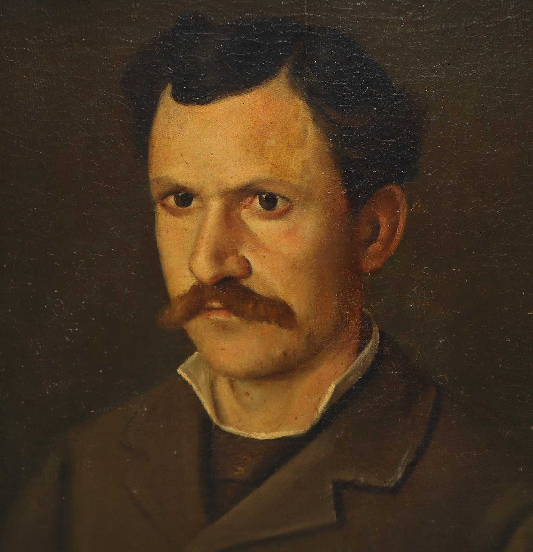 Ritratto di uomo con baffi, fine 19° secolo H cm 53x45 - in cornice H cm 64x55 Olio su tela Sul retro titolato Giuseppe Anastasi, di anni 33. Datato 03 gennaio 1895