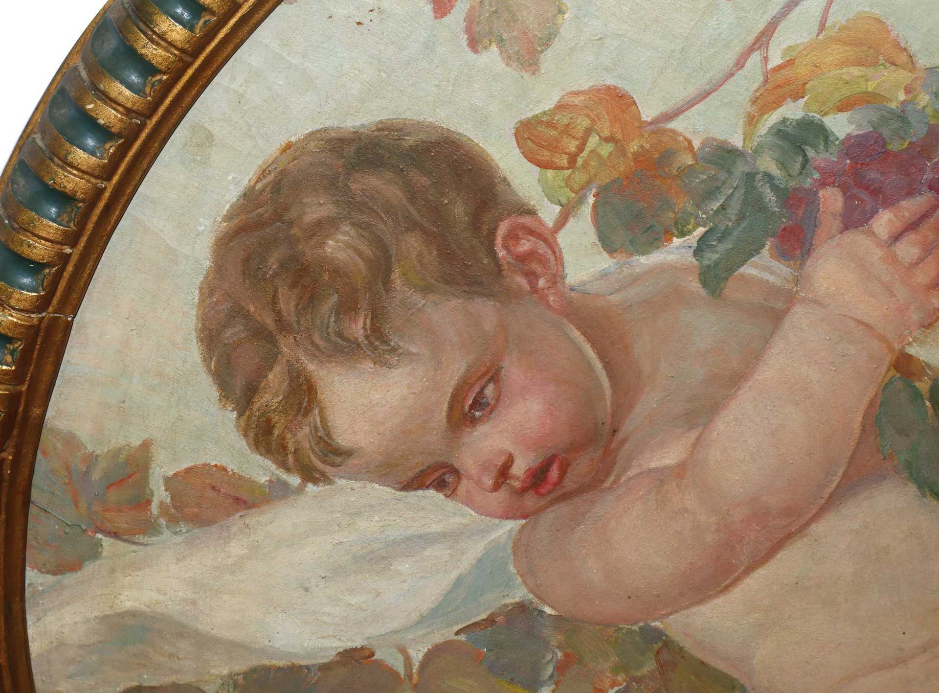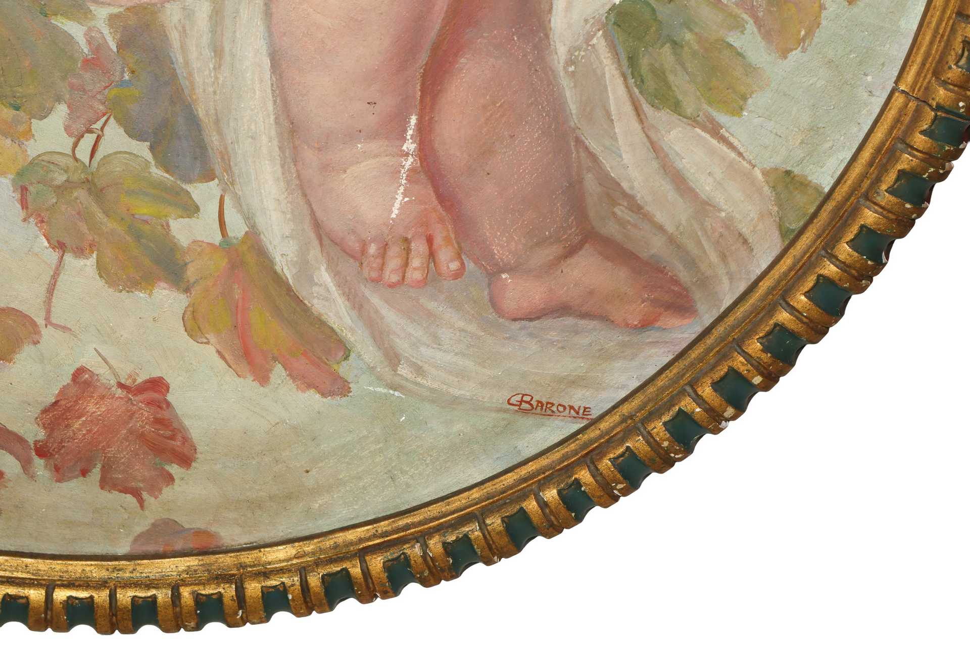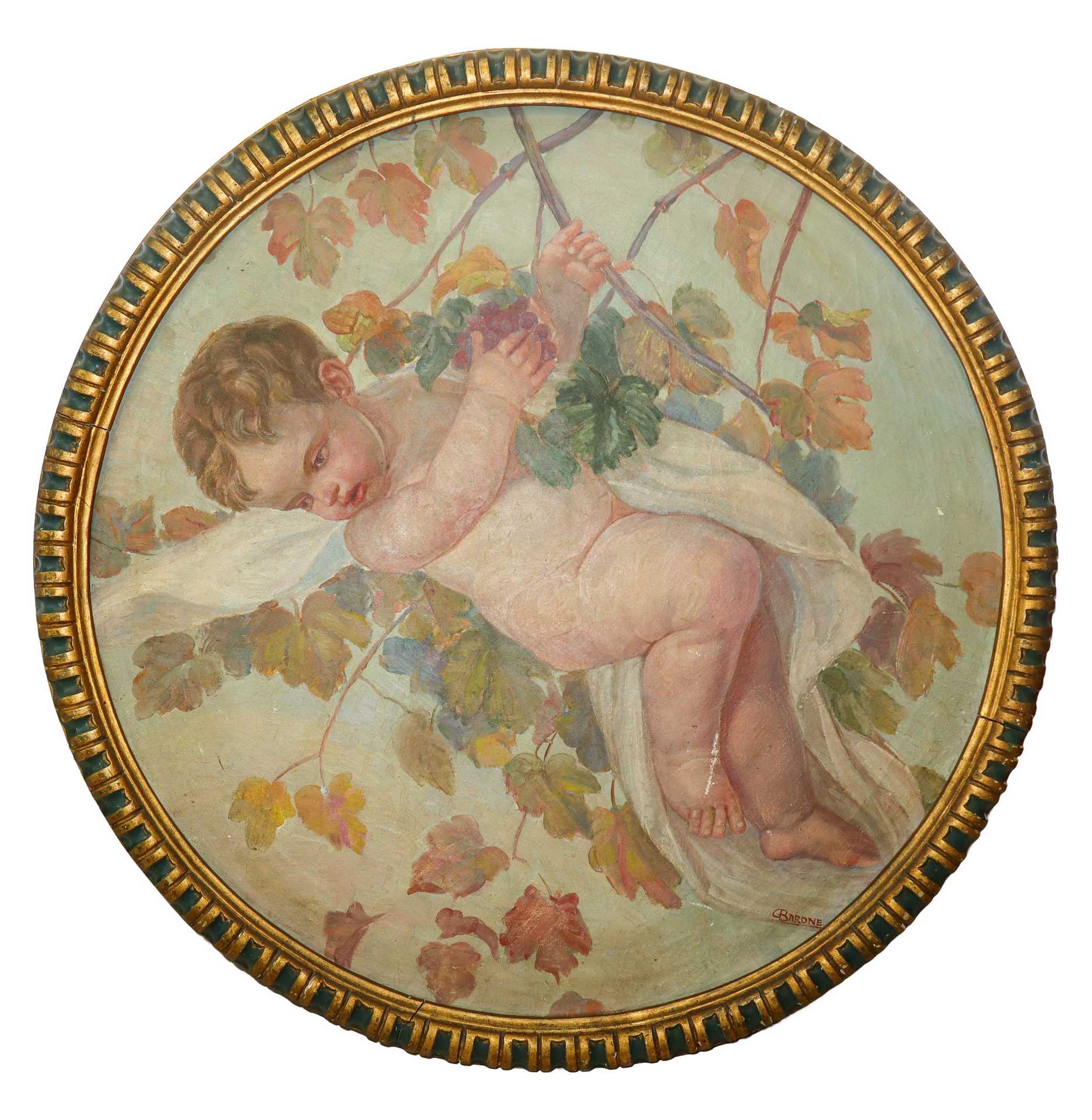 Barone Giuseppe (Militello in Val di Catania 2 ottobre 1887-Catania 3 gennaio 1956) - Putto con foglie, in cornice rotonda., 19th/20° secolo Diametro cm 77 Firmato Barone in basso a sinistraFirmato Barone in basso a sinistra
