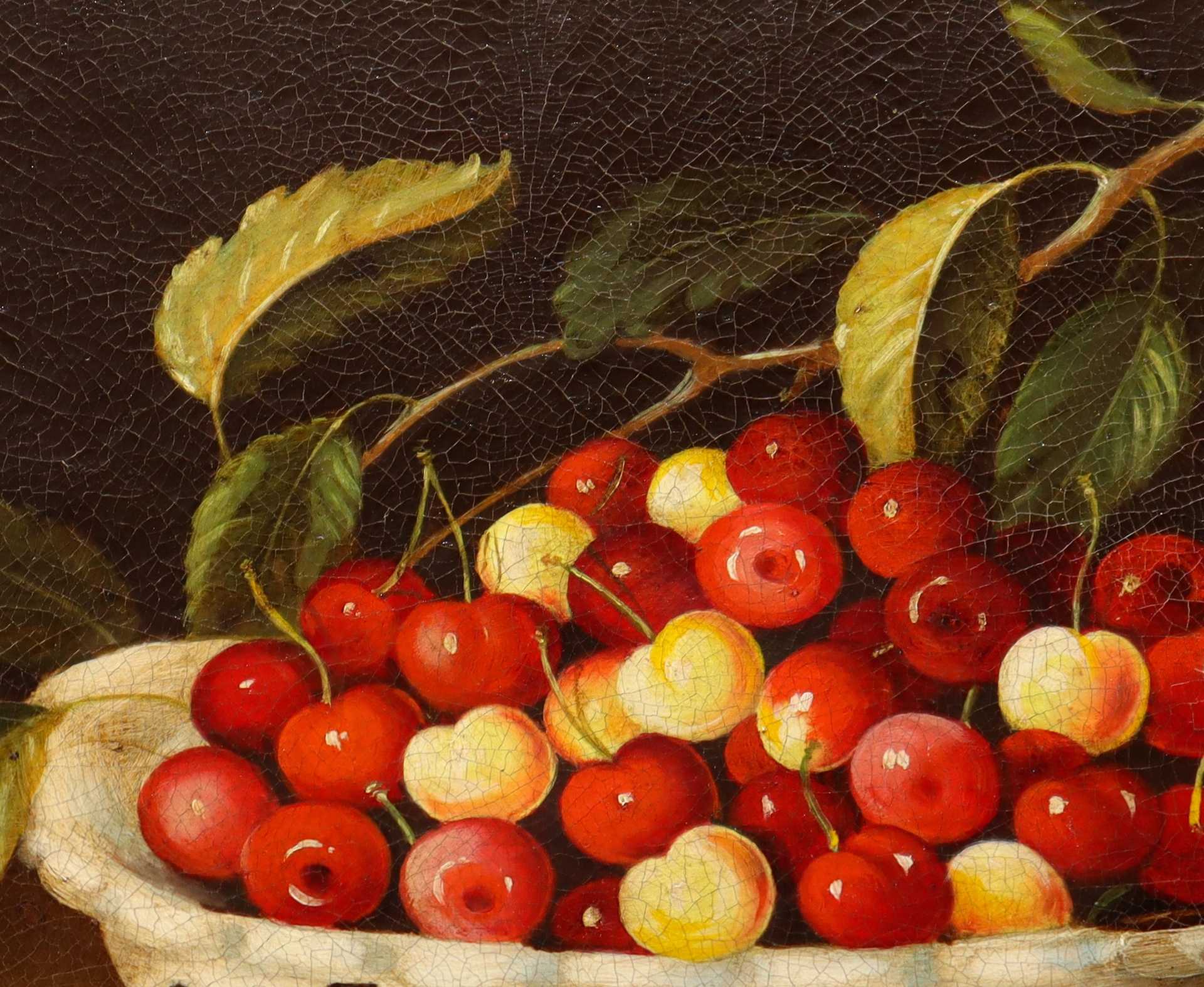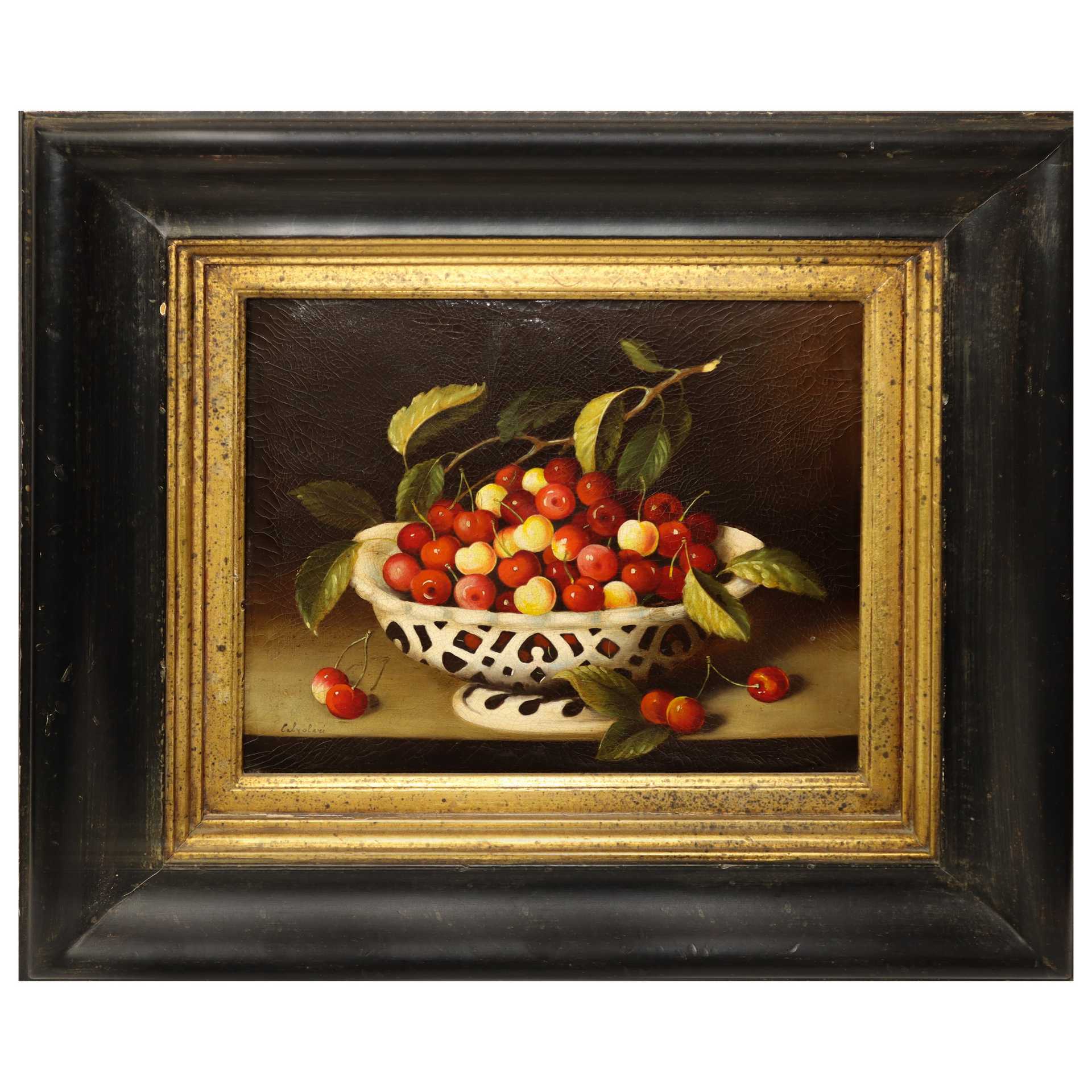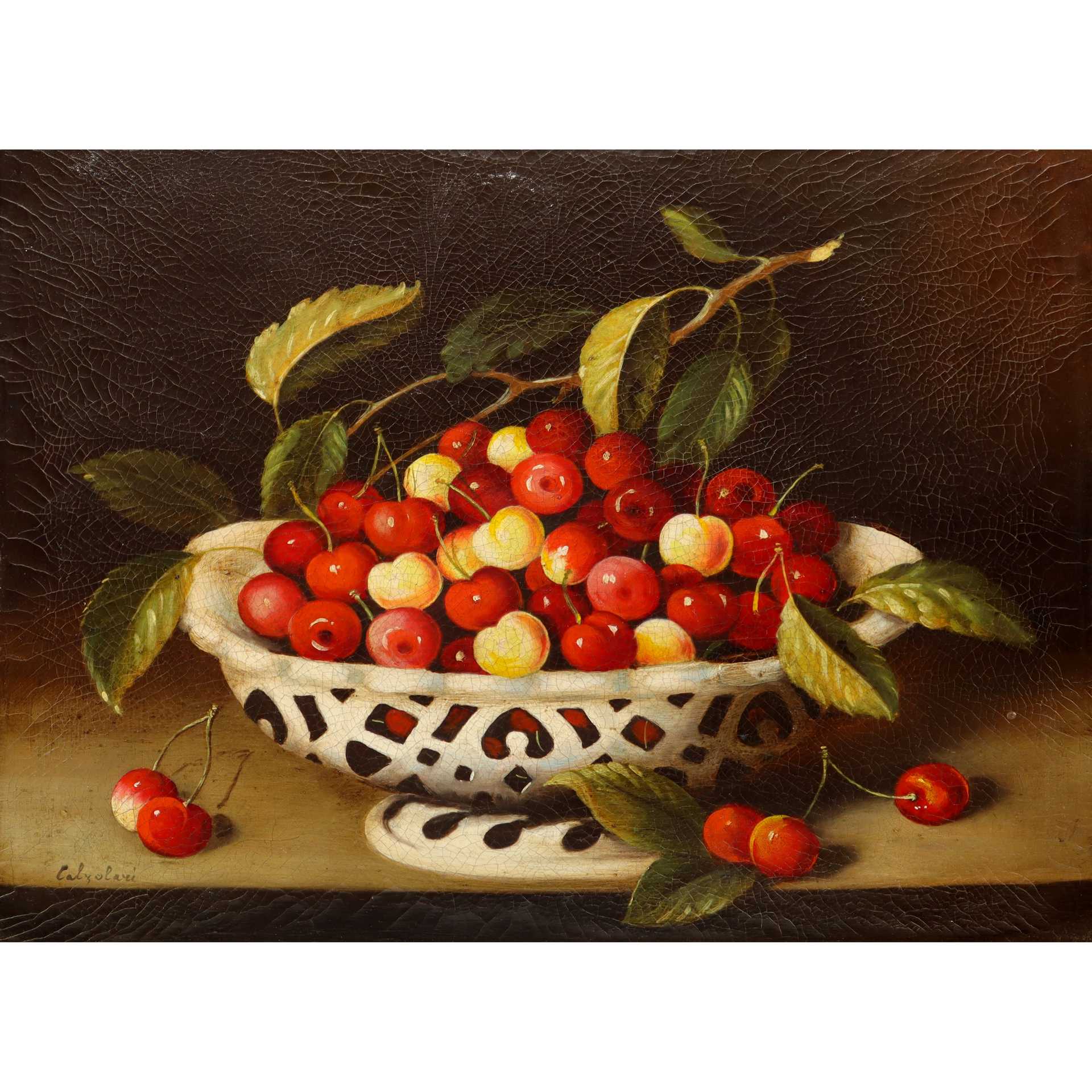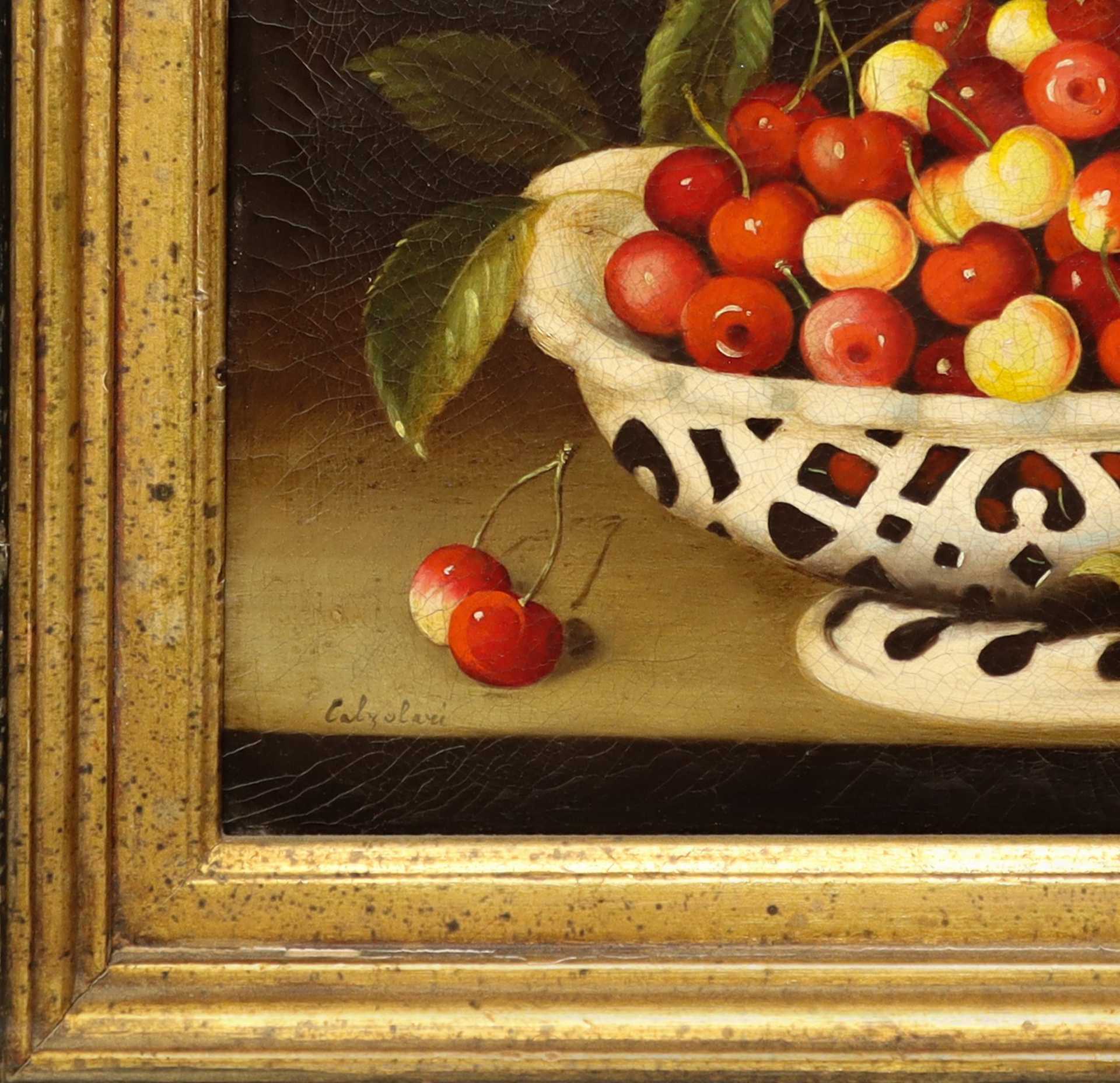Ida Calzolari (1936) - Cesto di ciliegie H cm 24x30, in cornice H cm 44x50 Olio su tela