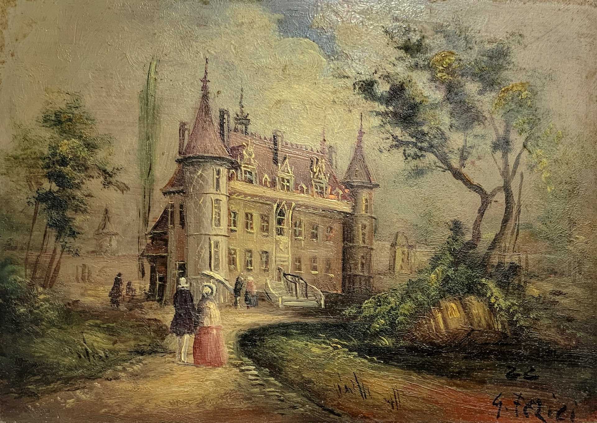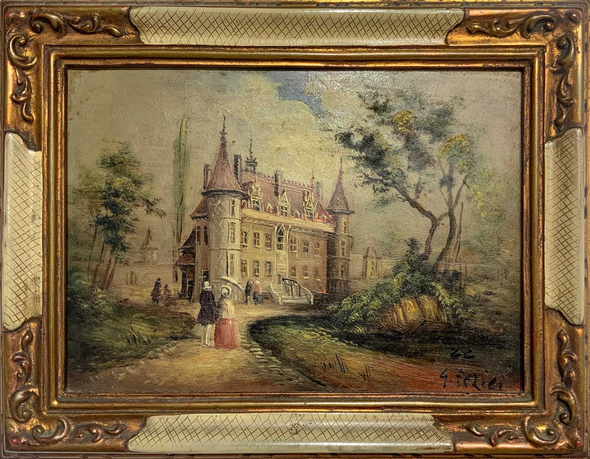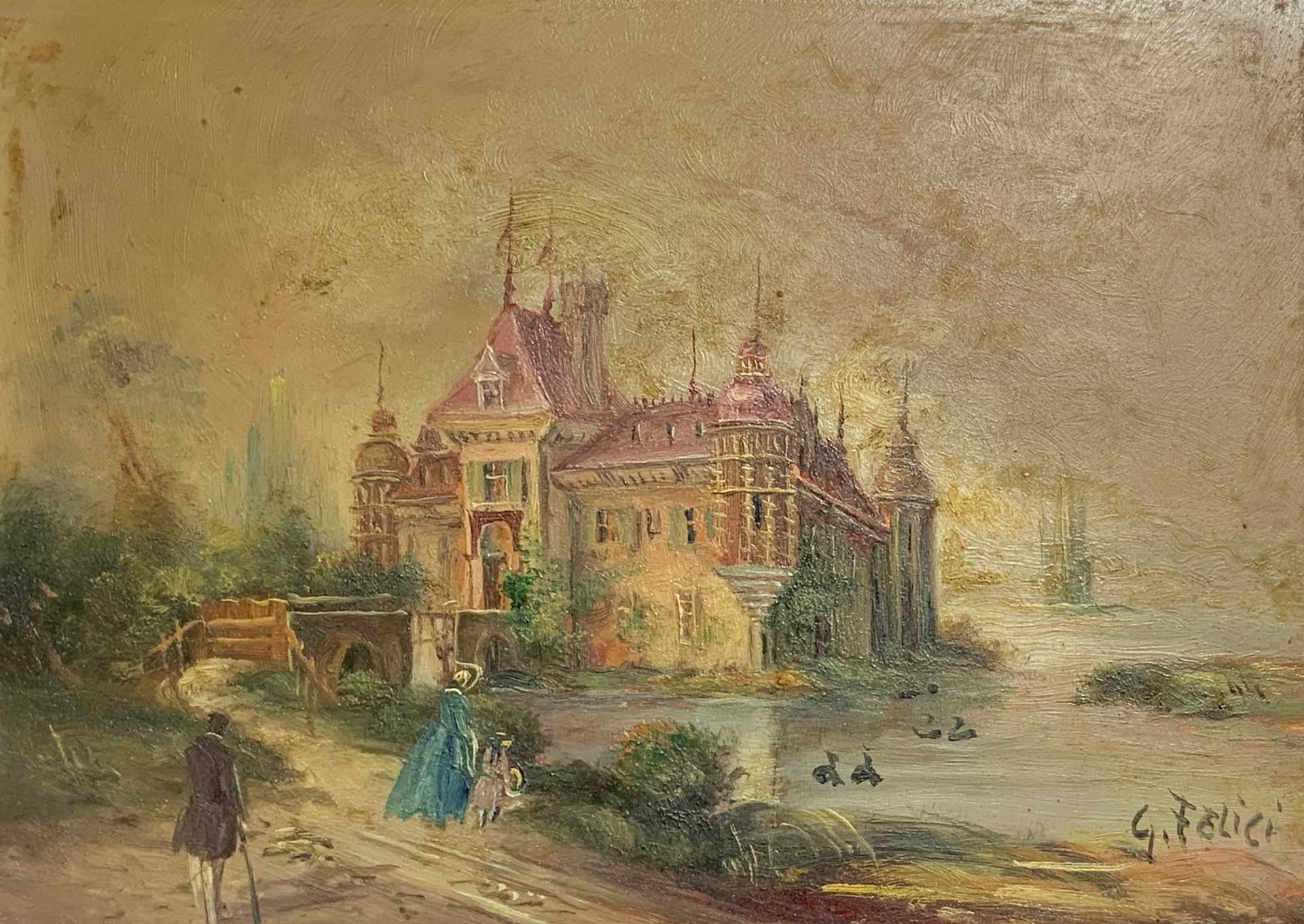 Castelli di Normandia , primi 20° secolo. Cm 90x68 Coppia di dipinti ad olio su rame, firmati G.FeliciCoppia di dipinti ad olio su rame, firmati G.Felici
