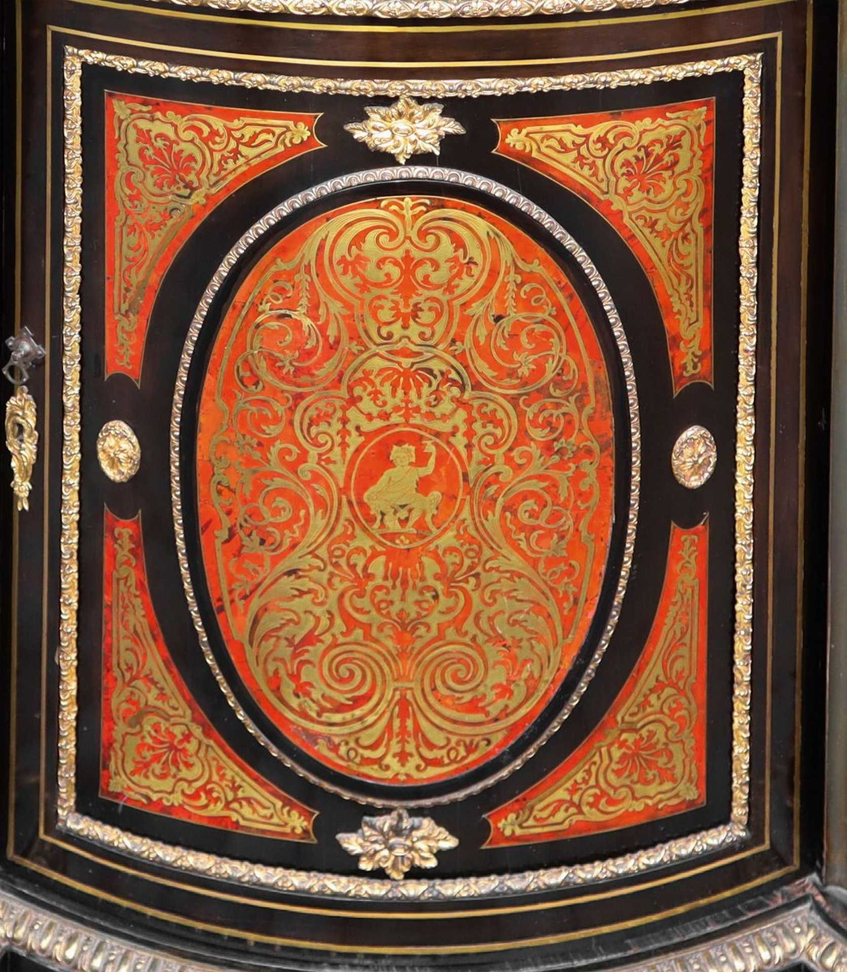 Etagère nello stile boulle con bronzi su marquetterie di tartaruga e rame, Napoleon III, France, fine 19° secolo. H cm 116 x L cm 208 x P cm 52 Con sportelli laterali in vetro bombatoCon sportelli laterali in vetro bombato