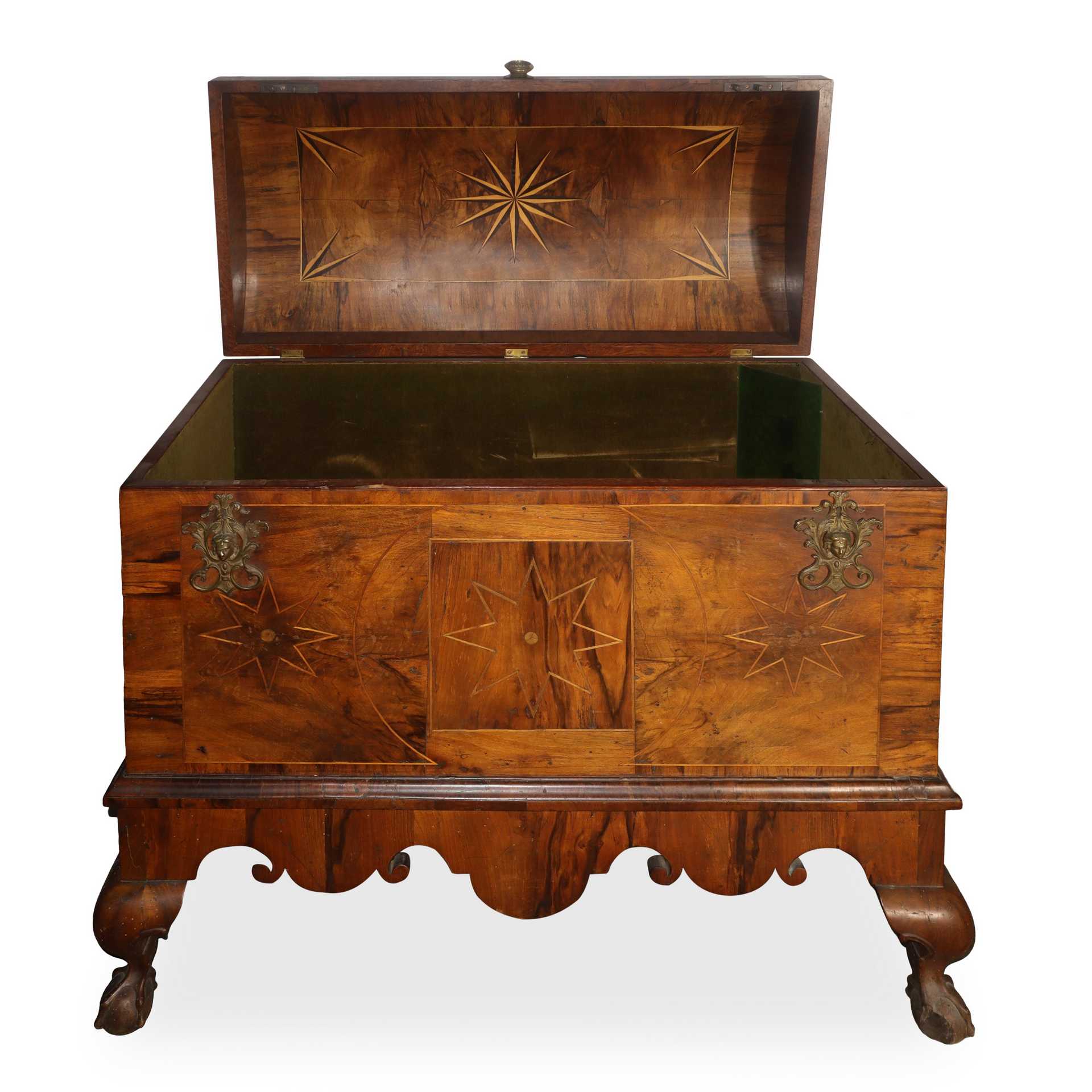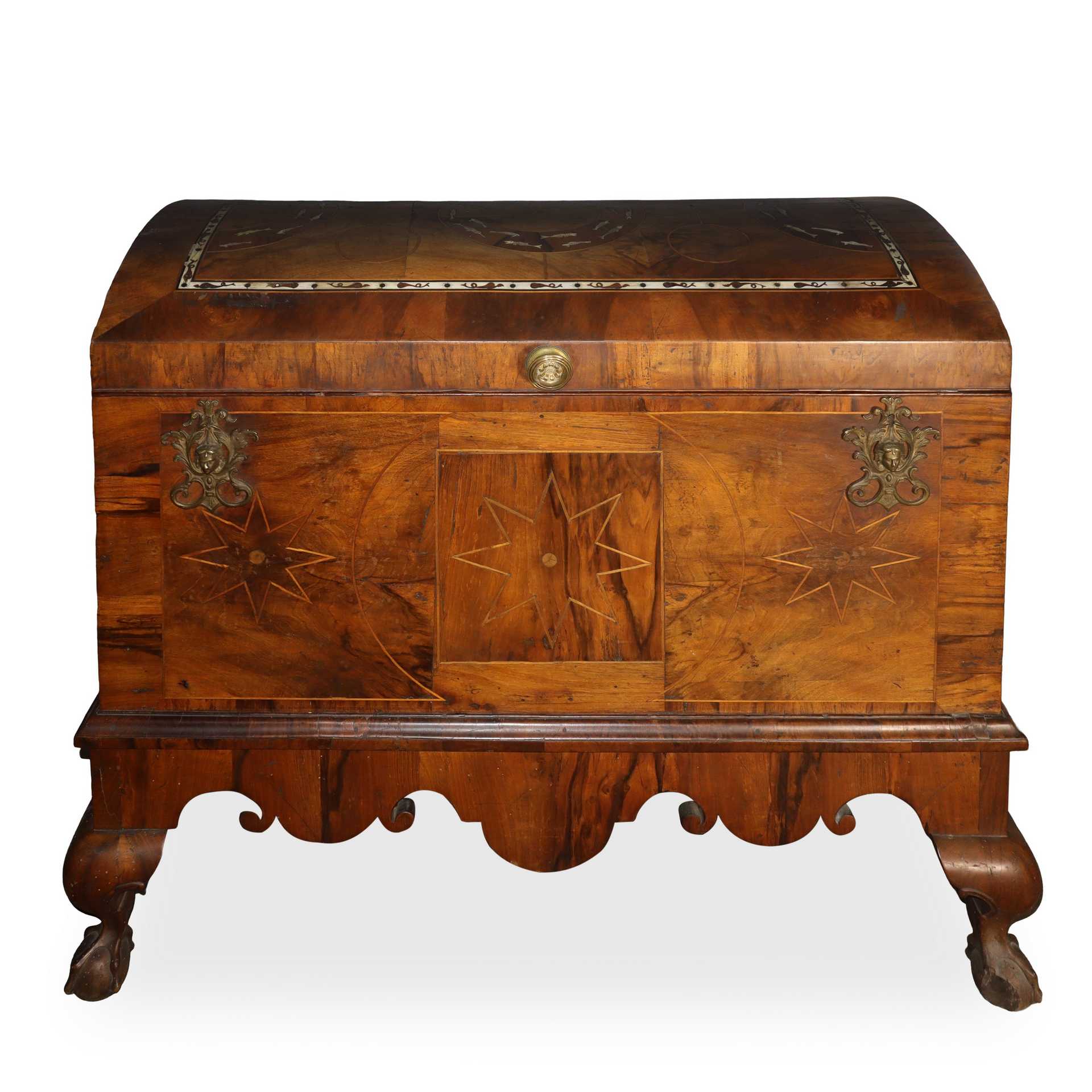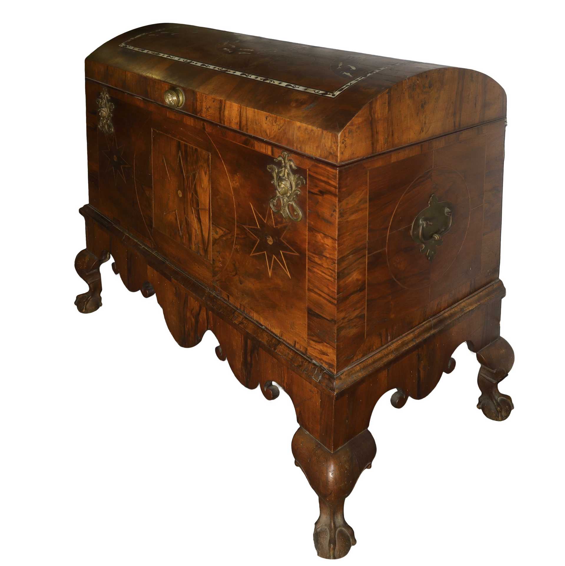 Baule cassapanca in radica di noce, 19° secolo h cm 101X122X65