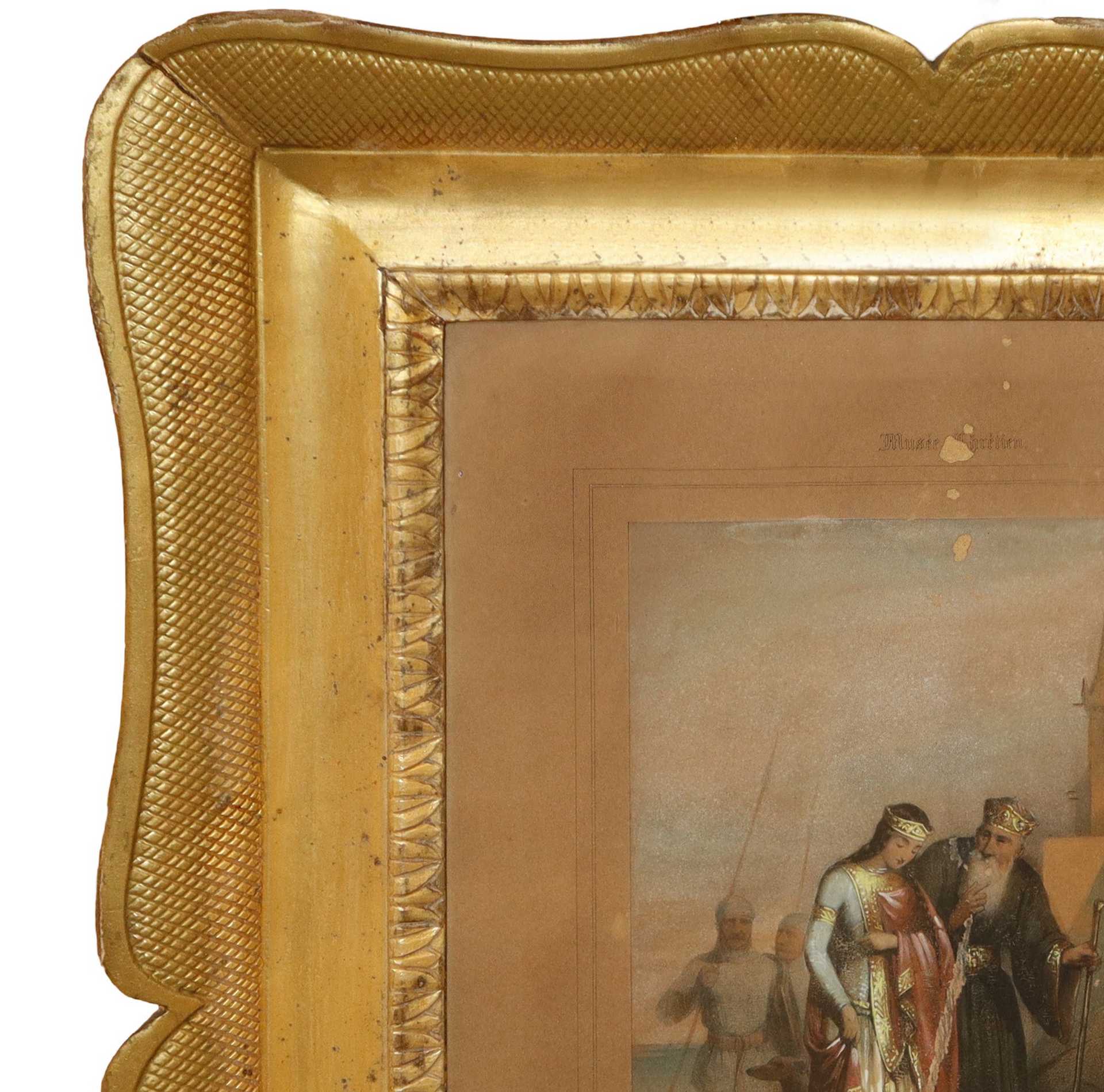 Cornice a vassoio in legno dorato a foglia bulinato con stampa del XIX secolo, Sicily 19° secolo