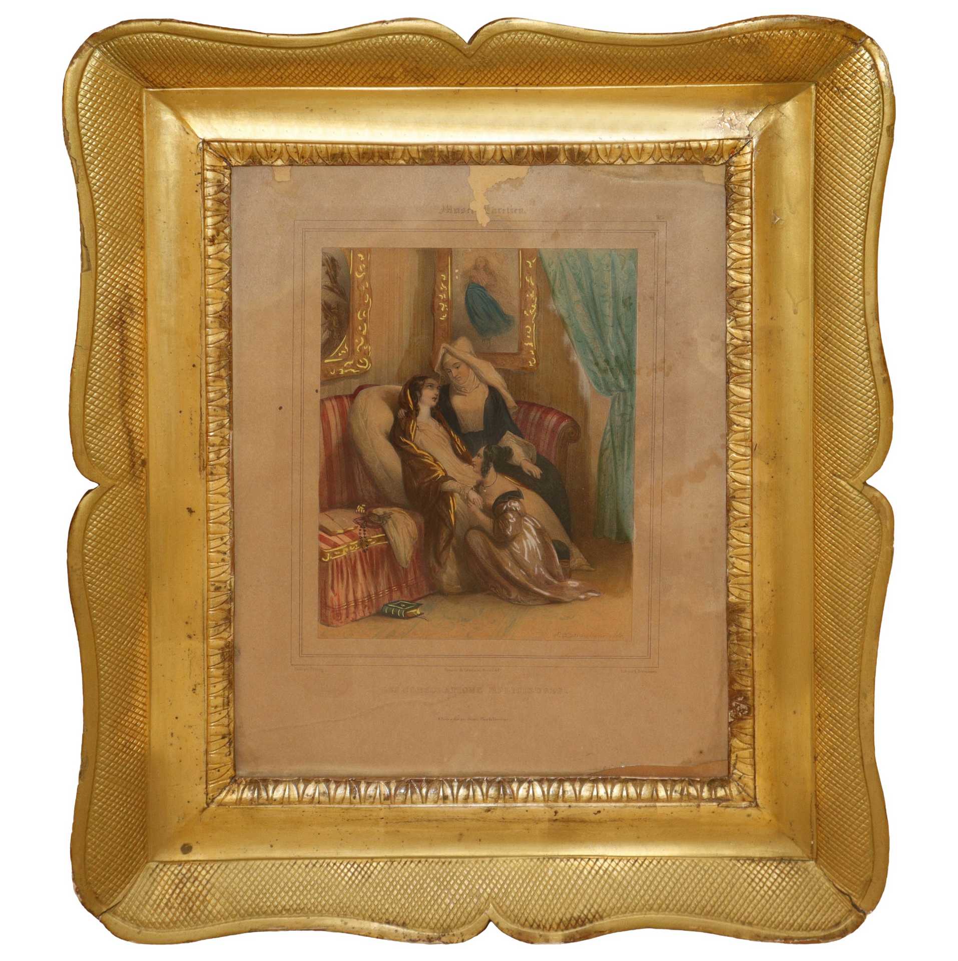 Cornice a vassoio in legno dorato a foglia bulinato con stampa del XIX secolo, Sicily 19° secolo