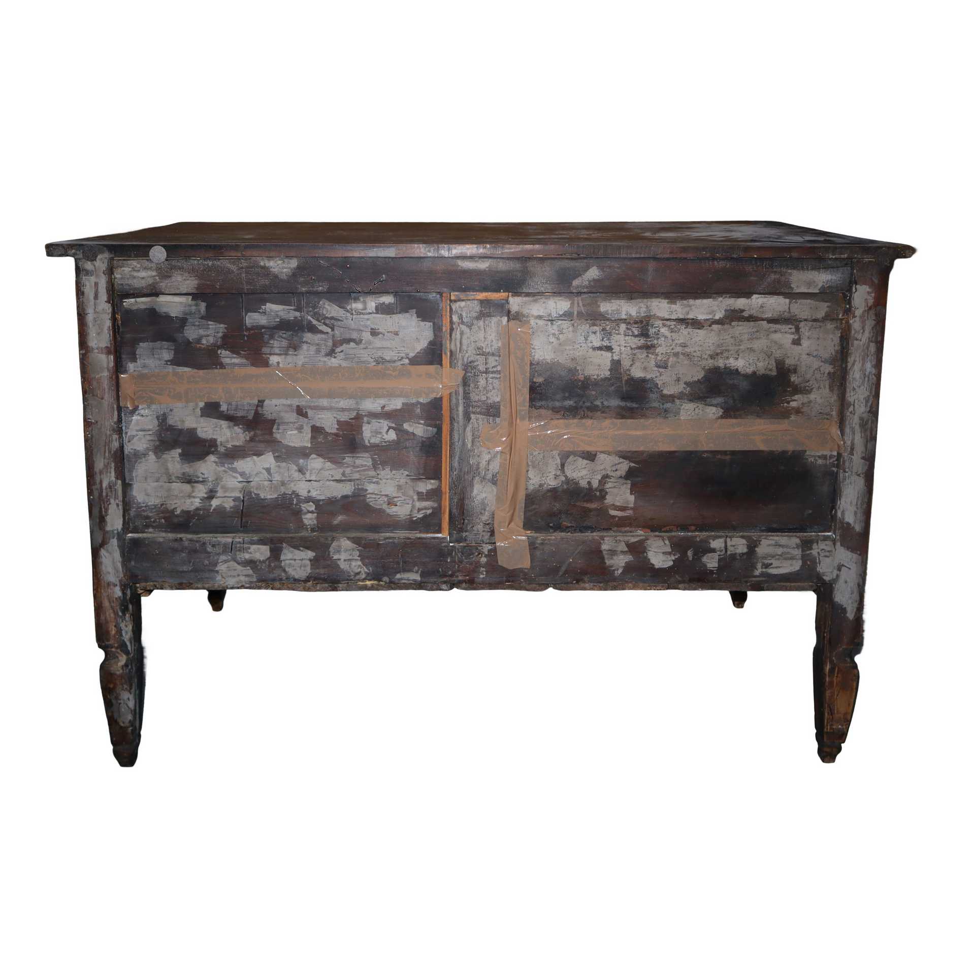 Cassettone Luigi XVI due cassetti in legno di noce con piedi troncopiramidali, maniglie e bocchette in metallo dorato applicate sul fronte, Sicily 18th/19° secolo h cm 86X130X58 Presenti mancanze e spaccature Presenti mancanze e spaccature