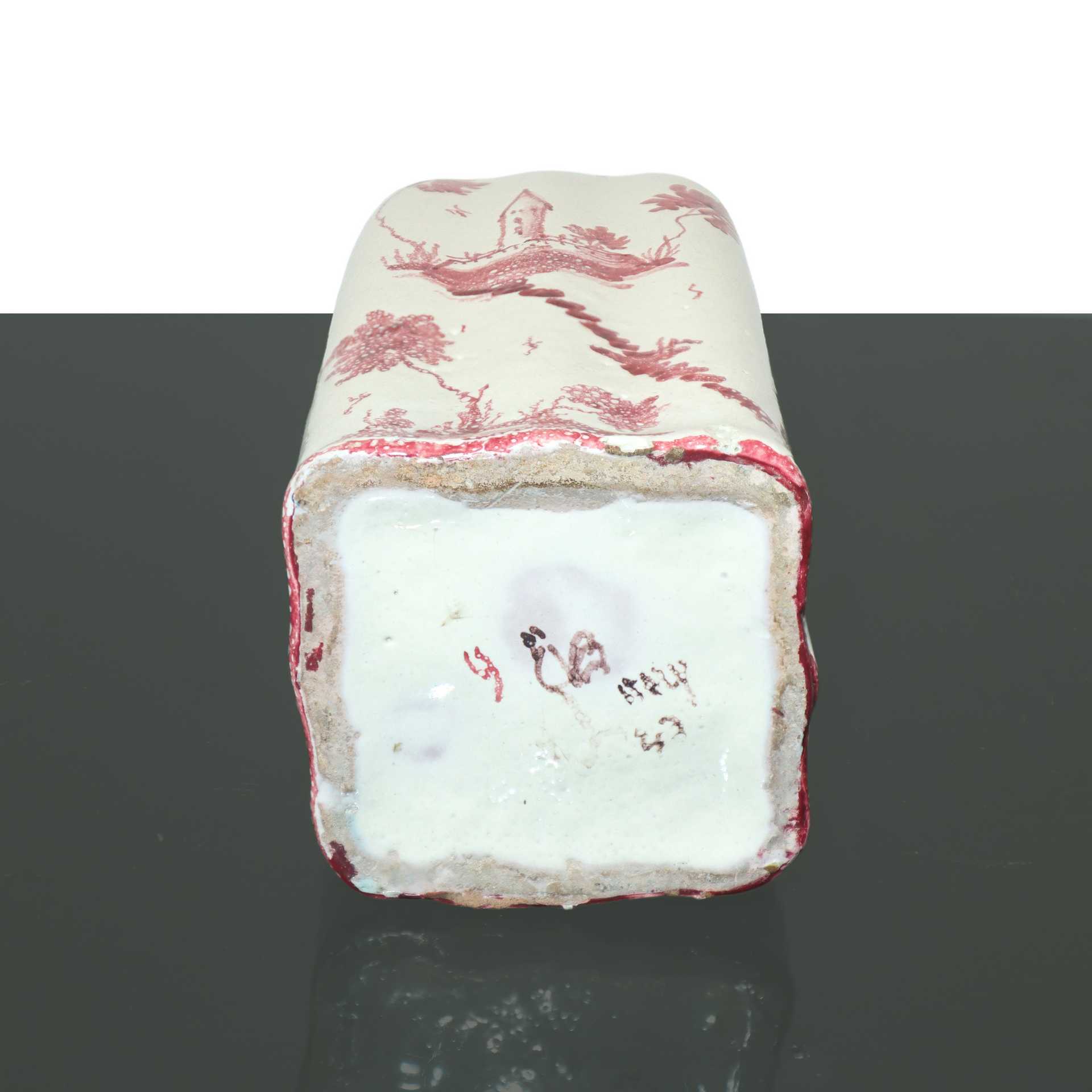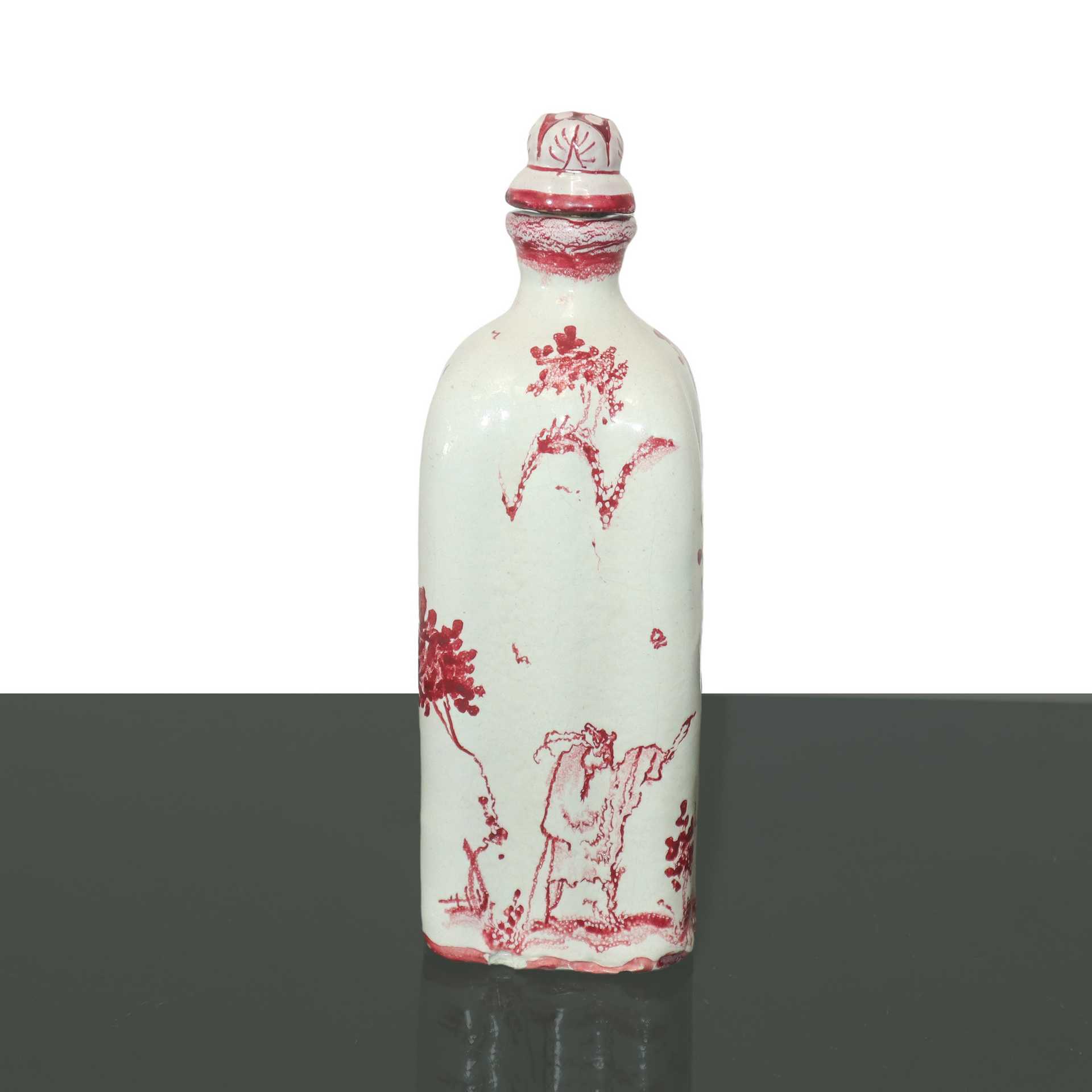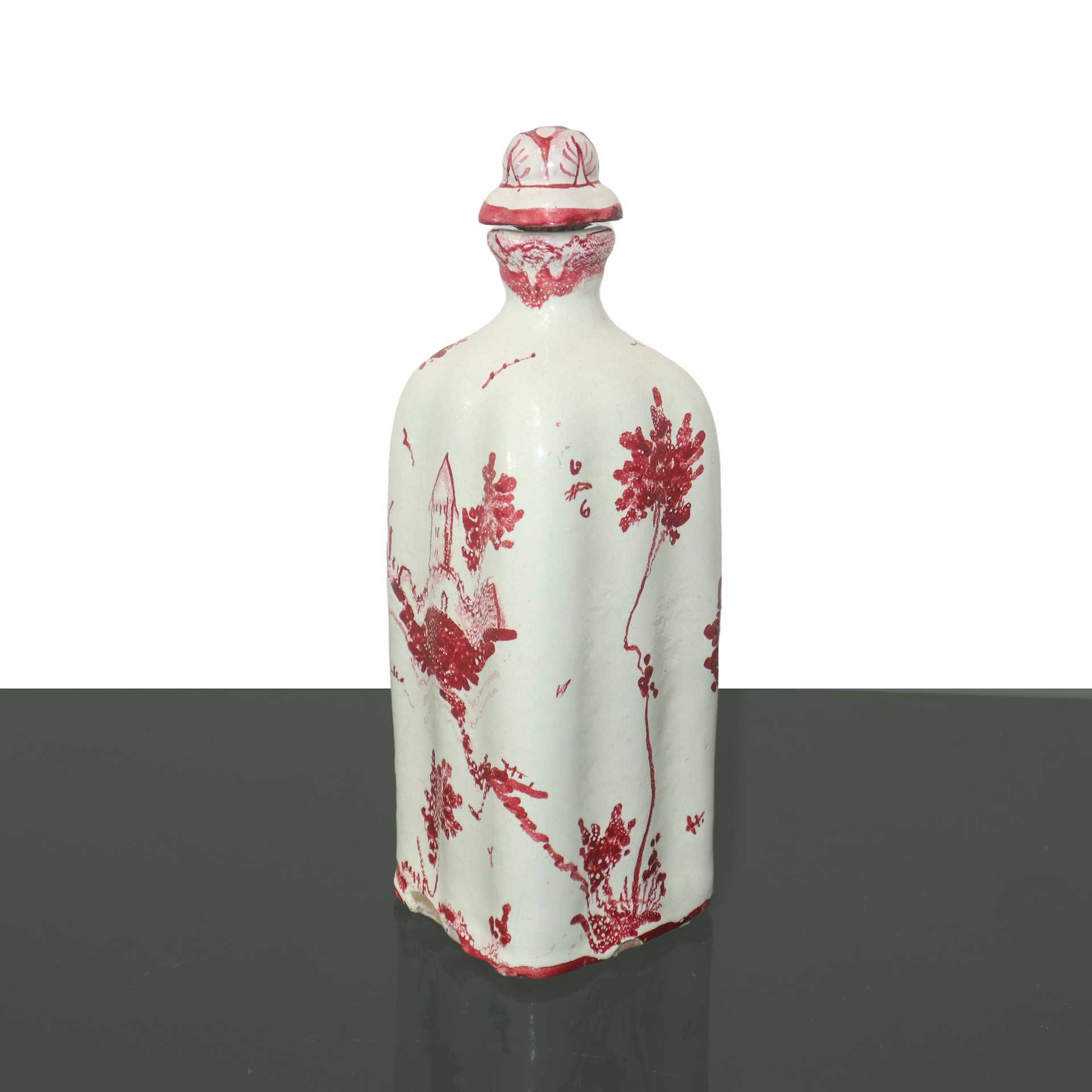 CASTELLI ARTE CERAMICA - Coppia di bottiglie in maiolica bianca con castello e motivi floreali rosa, 20° secolo