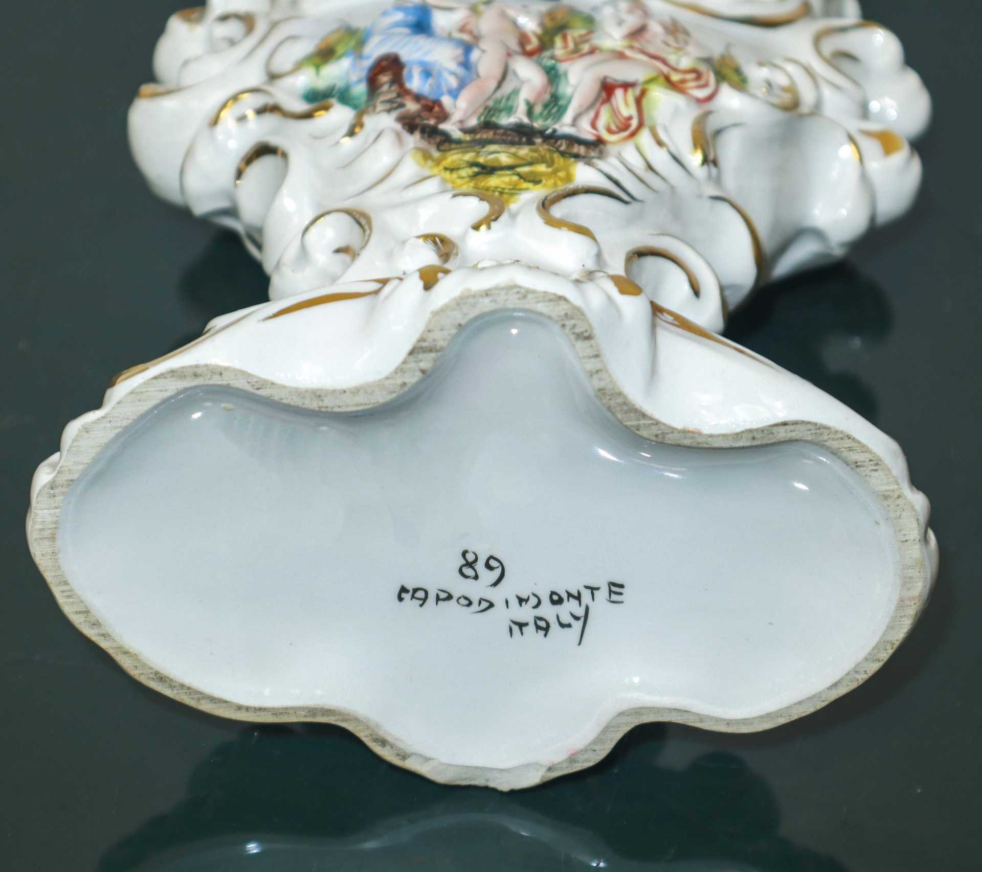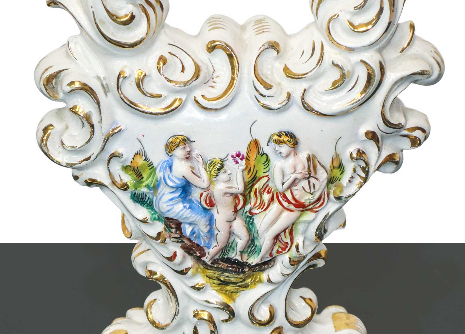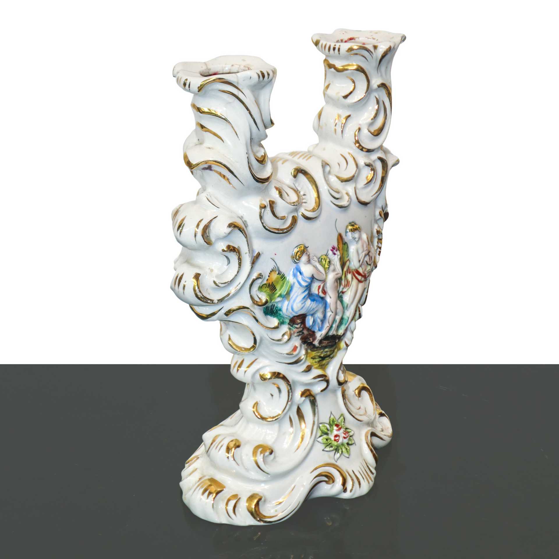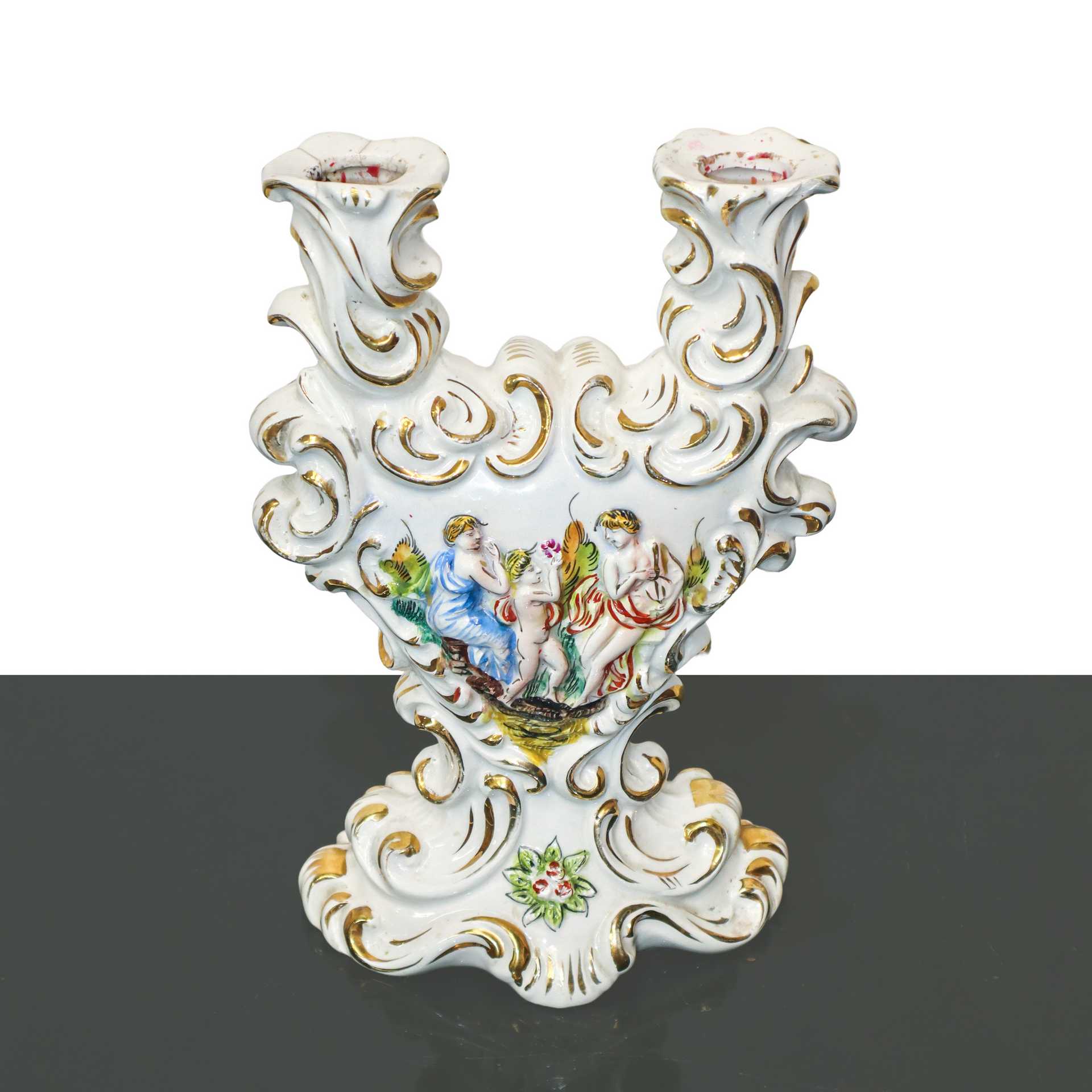 Capodimonte - Candelabro in maiolica di Capodimonte, policroma e dorata.