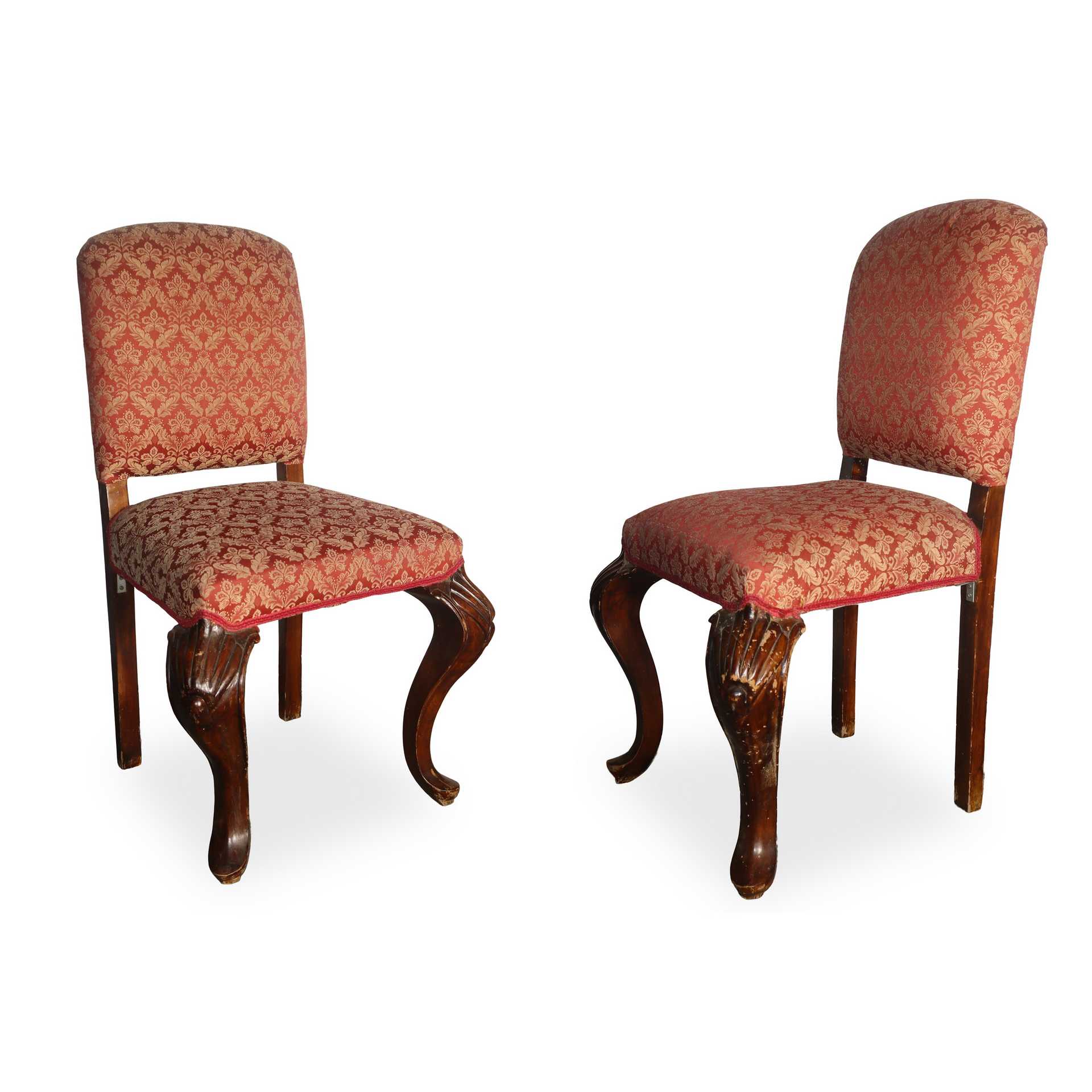 Coppia di sedie con tappezzeria rossa, gambe chippendale, 20° secolo