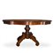 Tavolo basso a biscotto piano in radica di noce filettato con legni chiari piede a boccia a quattro razze, 19° secolo