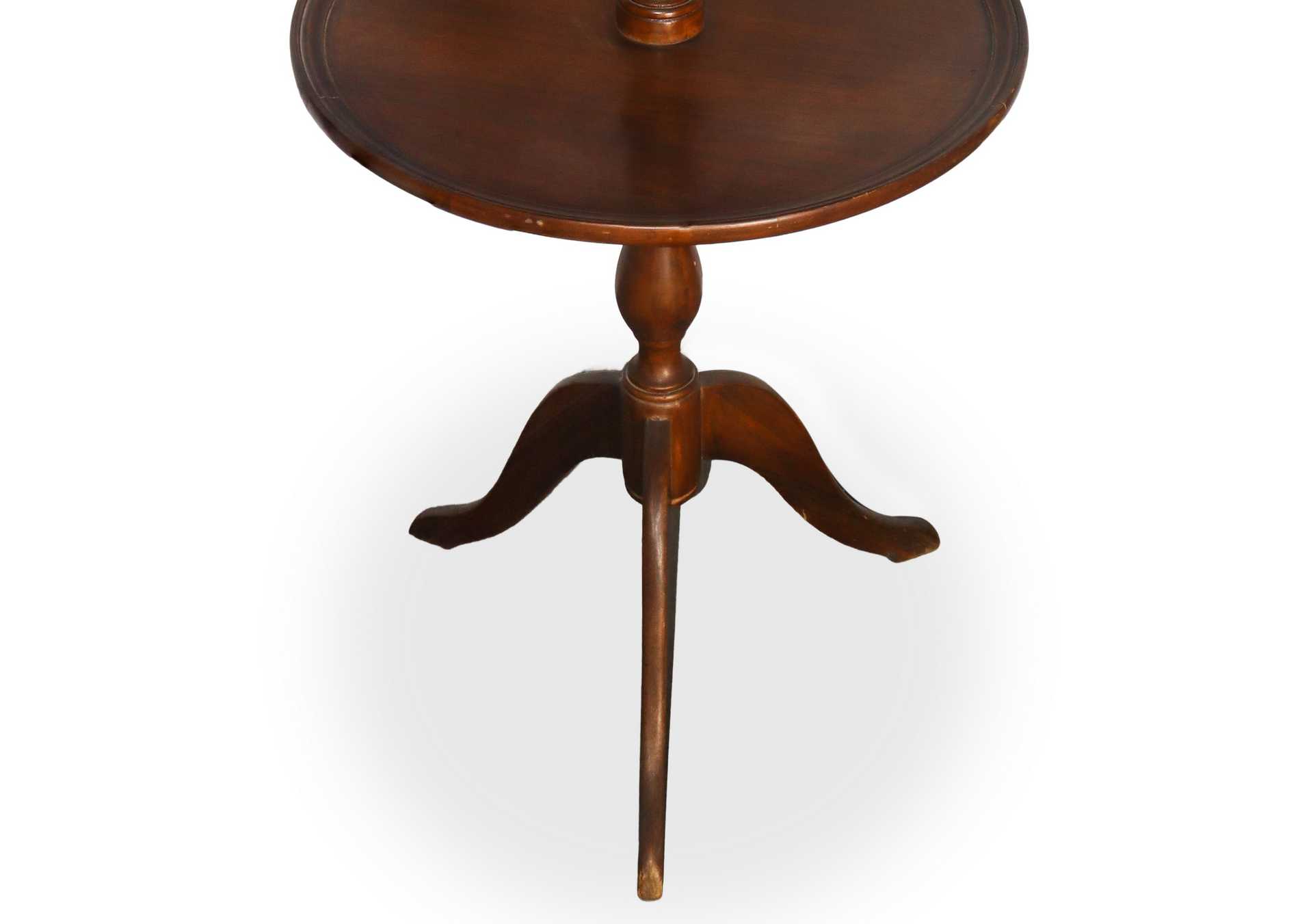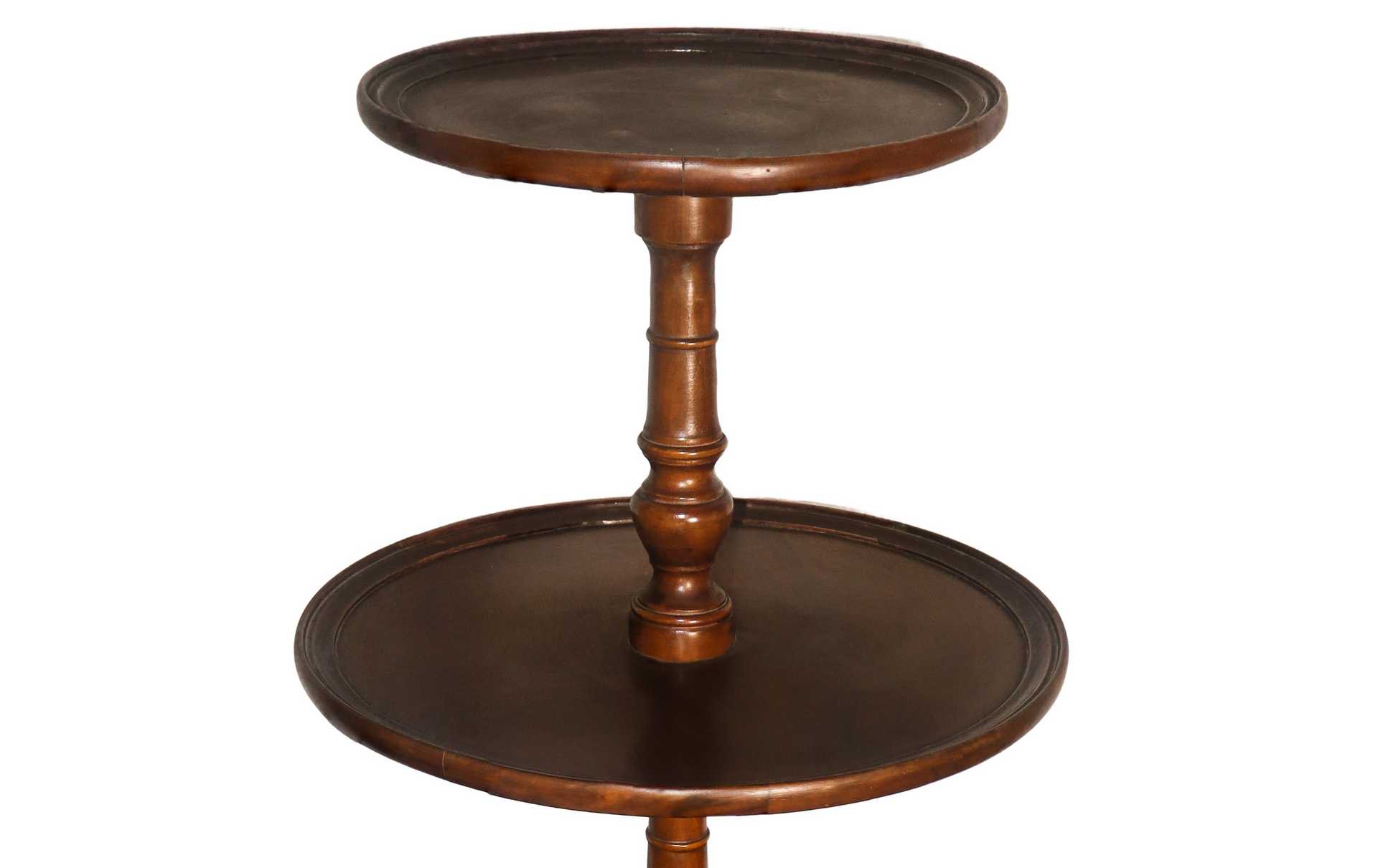 Servitore muto a tre ripiani rotondi in legno di noce piede a tre razze fusto di dostegno a rocchetto , 19° secolo