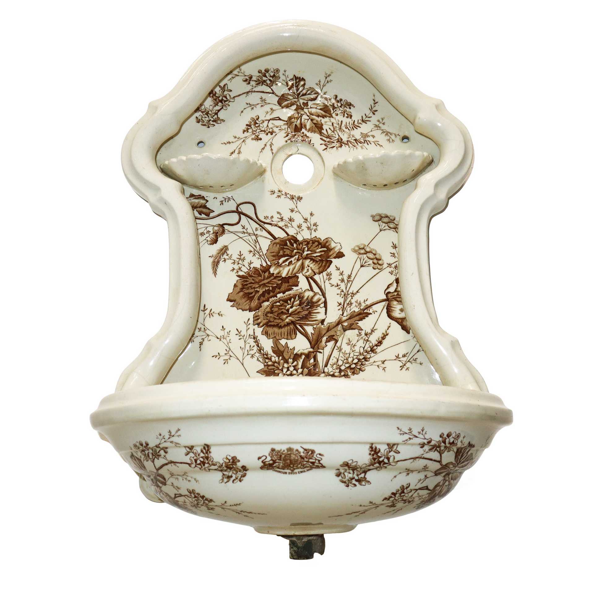 Fontanile in maiolica dipinto a motivi floreali h cm 50X34
