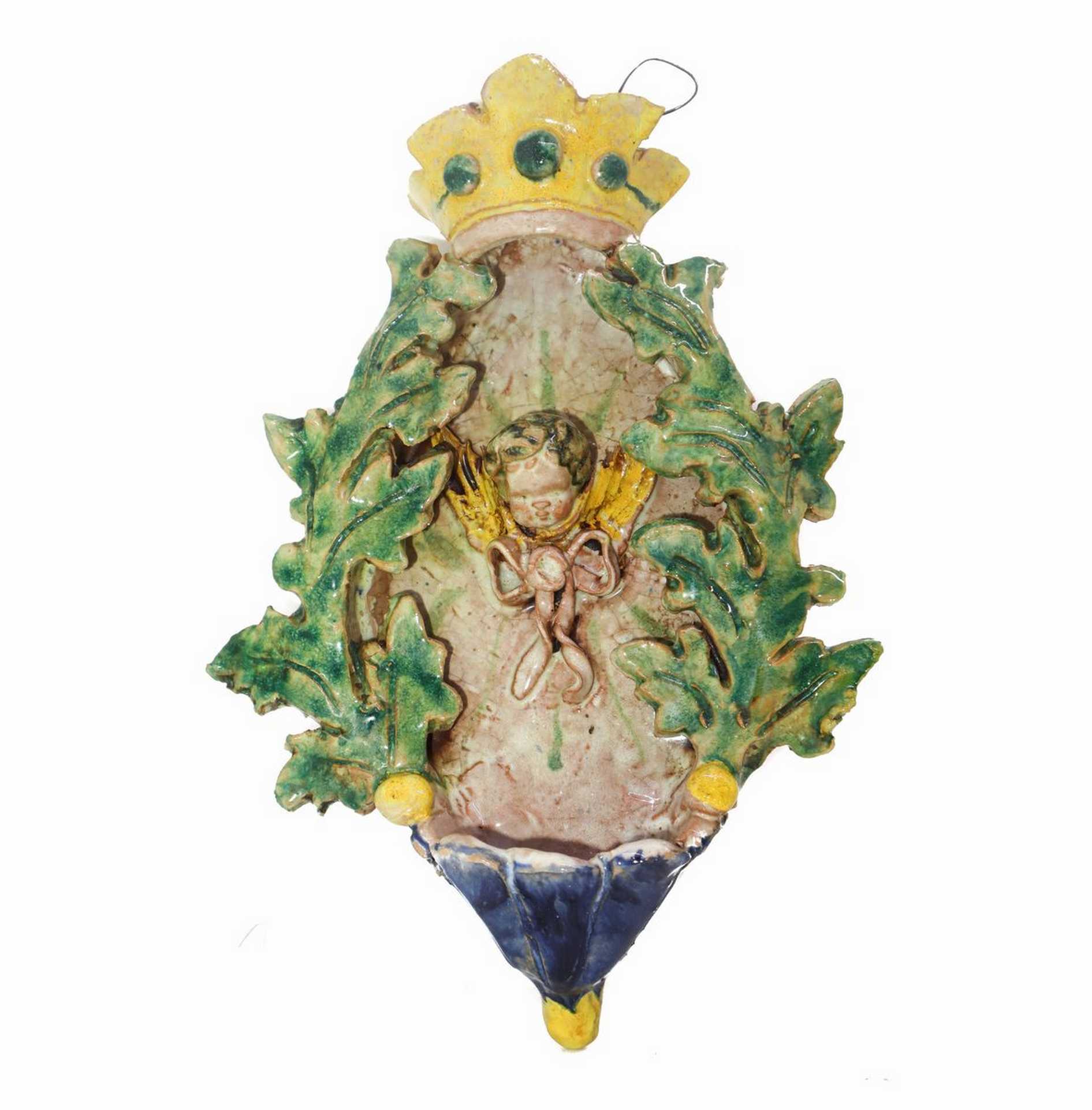 Acquasantiera Caltagirone, 20° secolo cm 20 x cm 18 Firmata Bonaccorso sul retroFirmata Bonaccorso sul retro