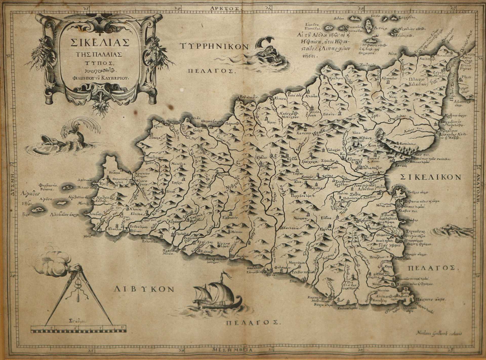 Coppia di carte geografiche della Sicilia, Siciliae Antiquae descriptio