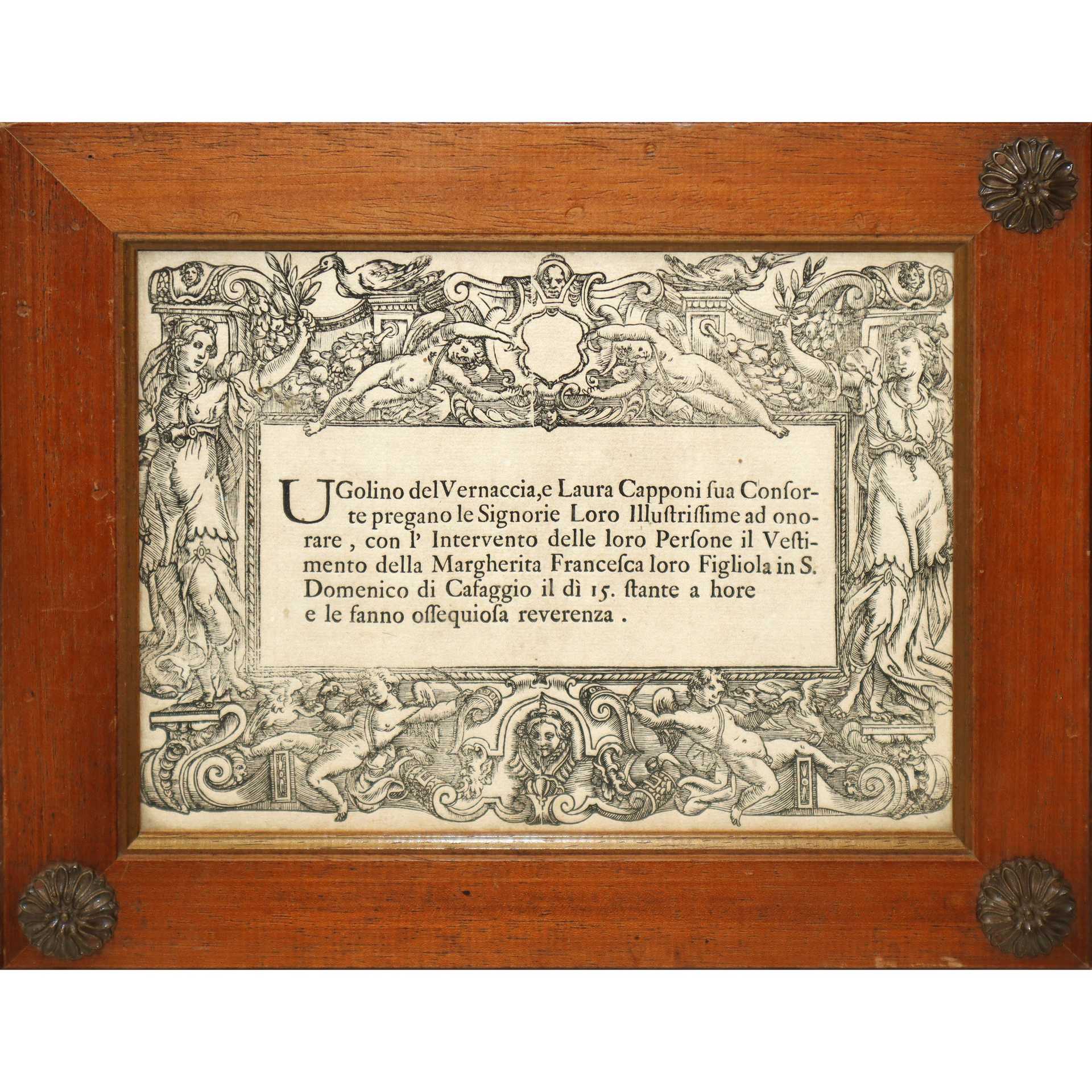 Lotto 247 | Invito alla vestizione di Margherita Francesca, inviata da Ugolino del Vernaccia e Laura Capponi