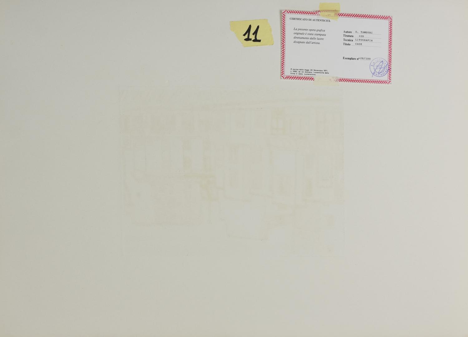 Lotto 148 | Orfeo Tamburi CASE acquaforte-acquatinta, cm 24x31, su foglio cm 50x70; es....