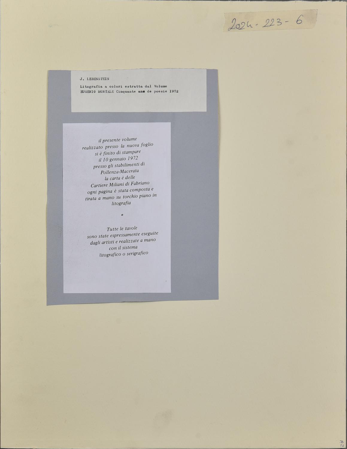 Lotto 151 | Da Jan Lebenstein EUGENIO MONTALE, CINQUANTE ANS DE POESIE, 1972 litografia a...