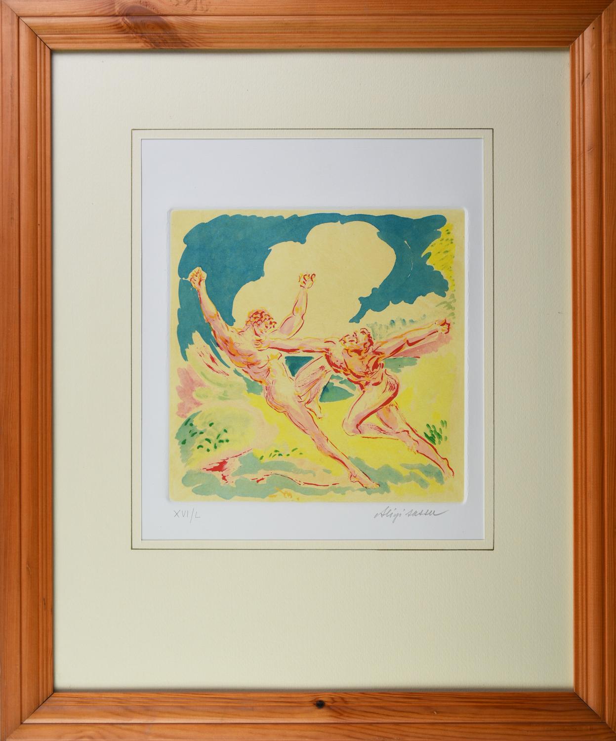 Aligi Sassu PROTEO LOTTA CON MENELAO, 1995 acquaforte-acquatinta, cm 22x22,...