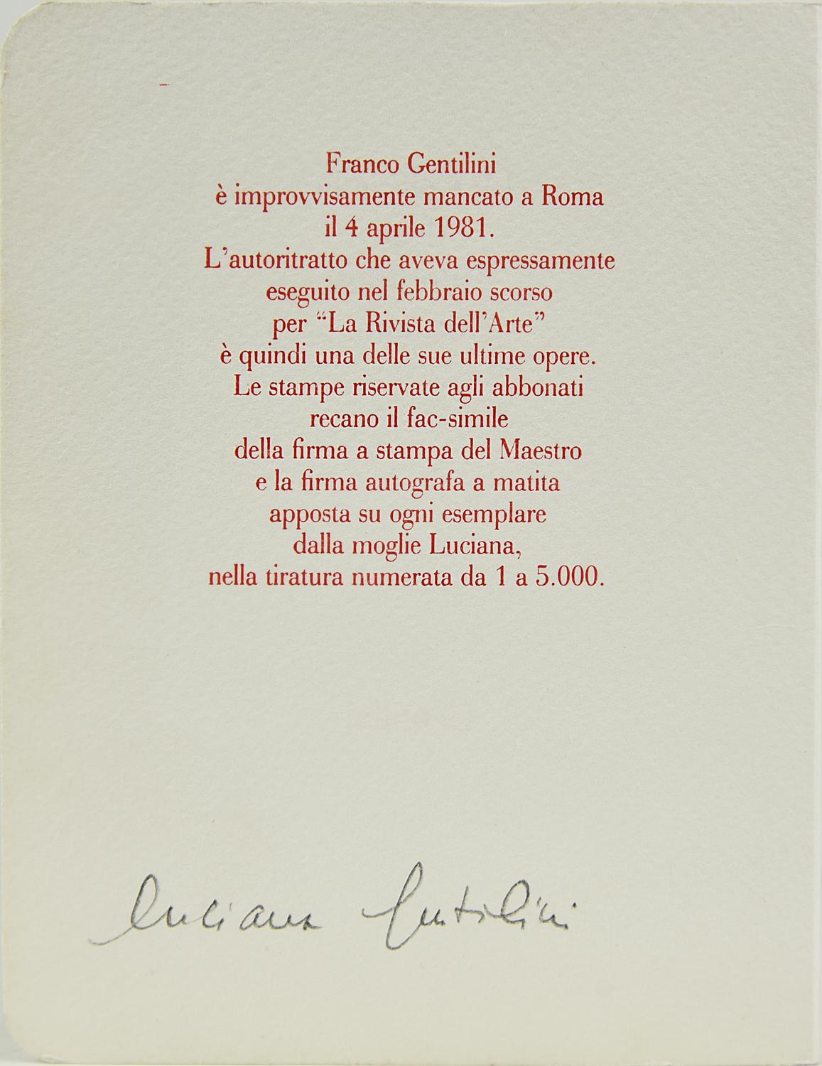 Franco Gentilini AUTORITRATTO fotolitografia a 2 colori su cartoncino, cm...