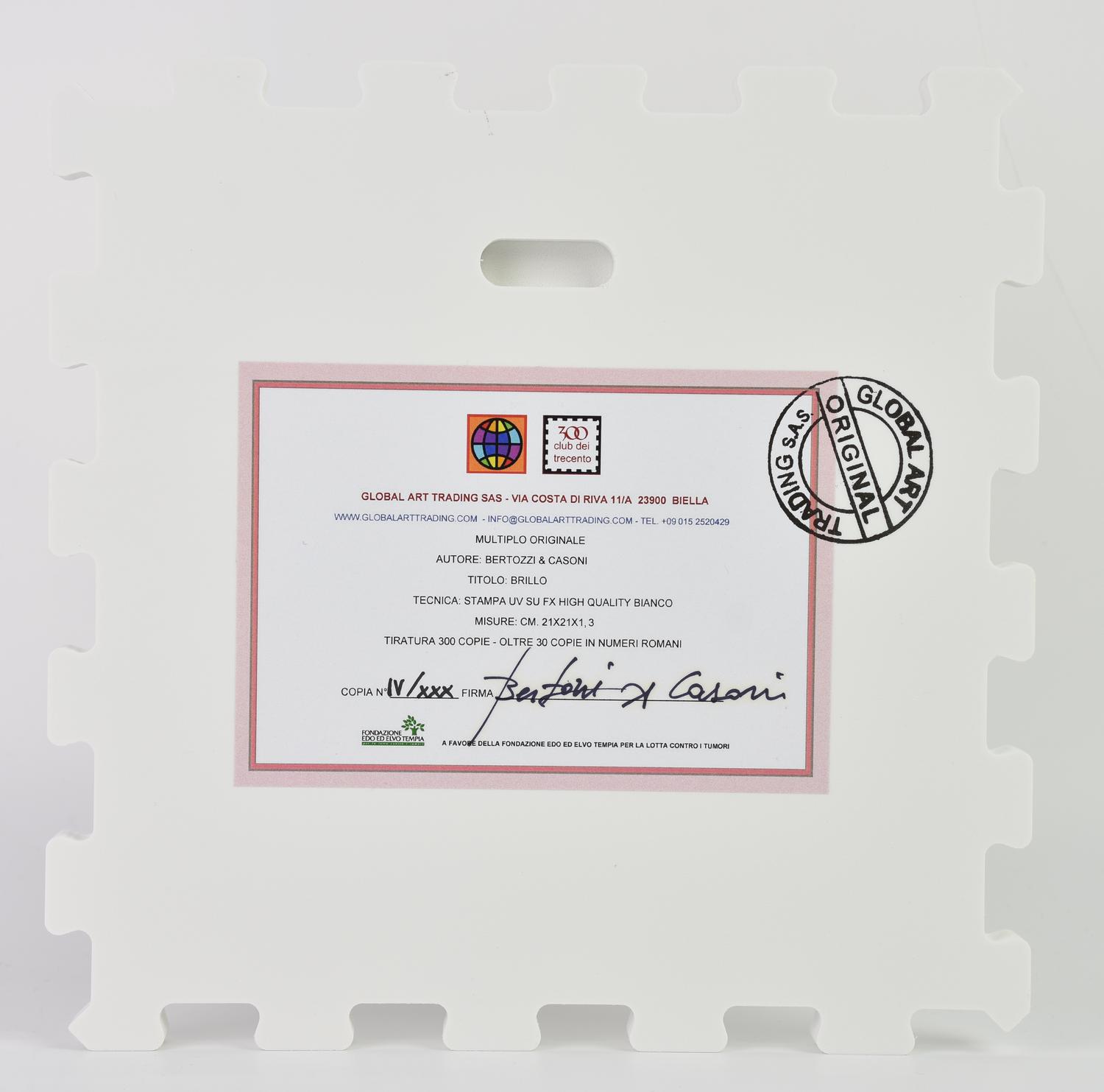 Lotto 203 | Bertozzi&Casoni BRILLO stampa UV su FX high quality bianco, cm 21x21x1,3; es....
