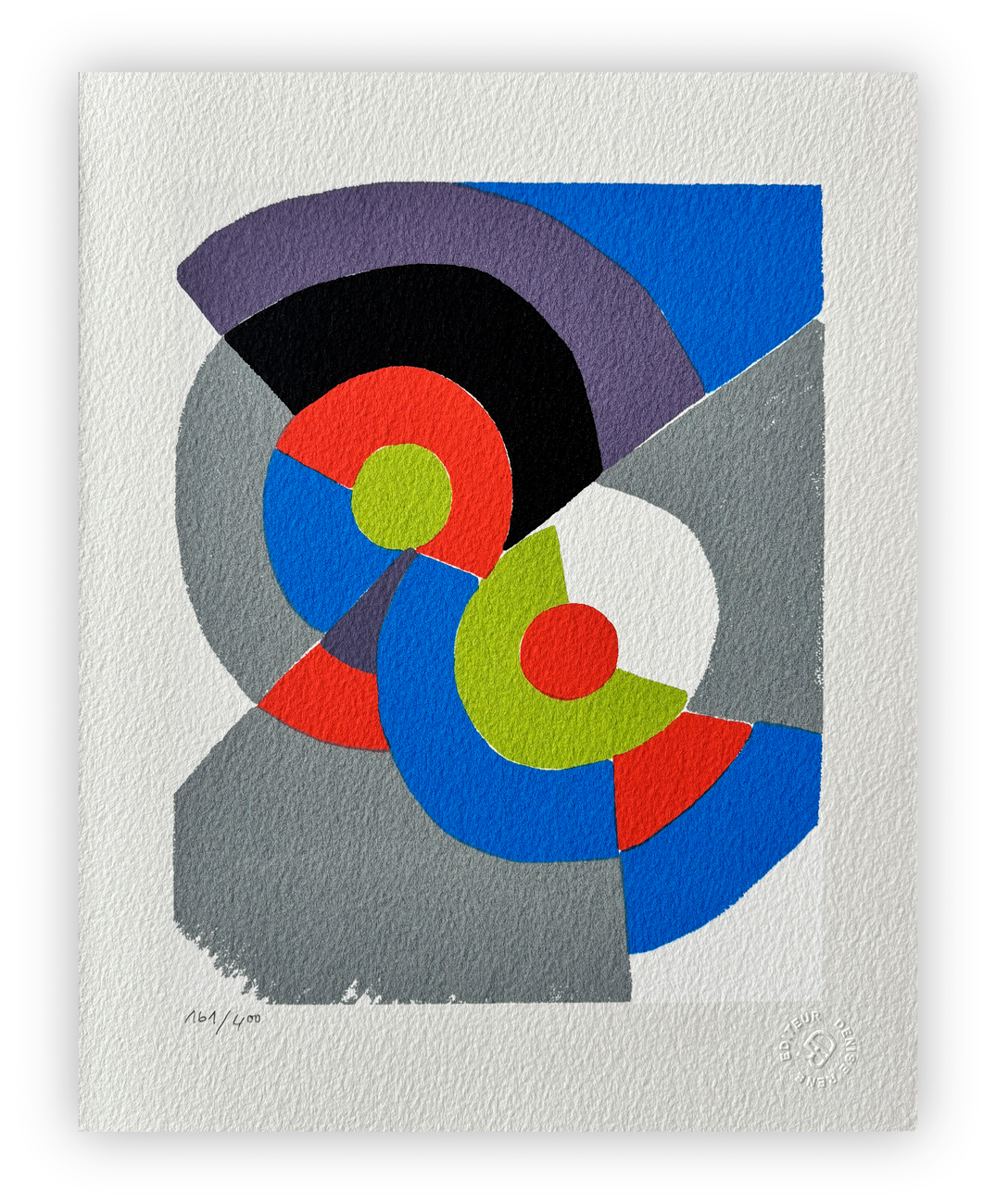 Pieghevole augurale con una stampa di Sonia Delauney "Rythme couleur" edito da Denise René in 400 esemplari numerati (Esemplare 161/400)