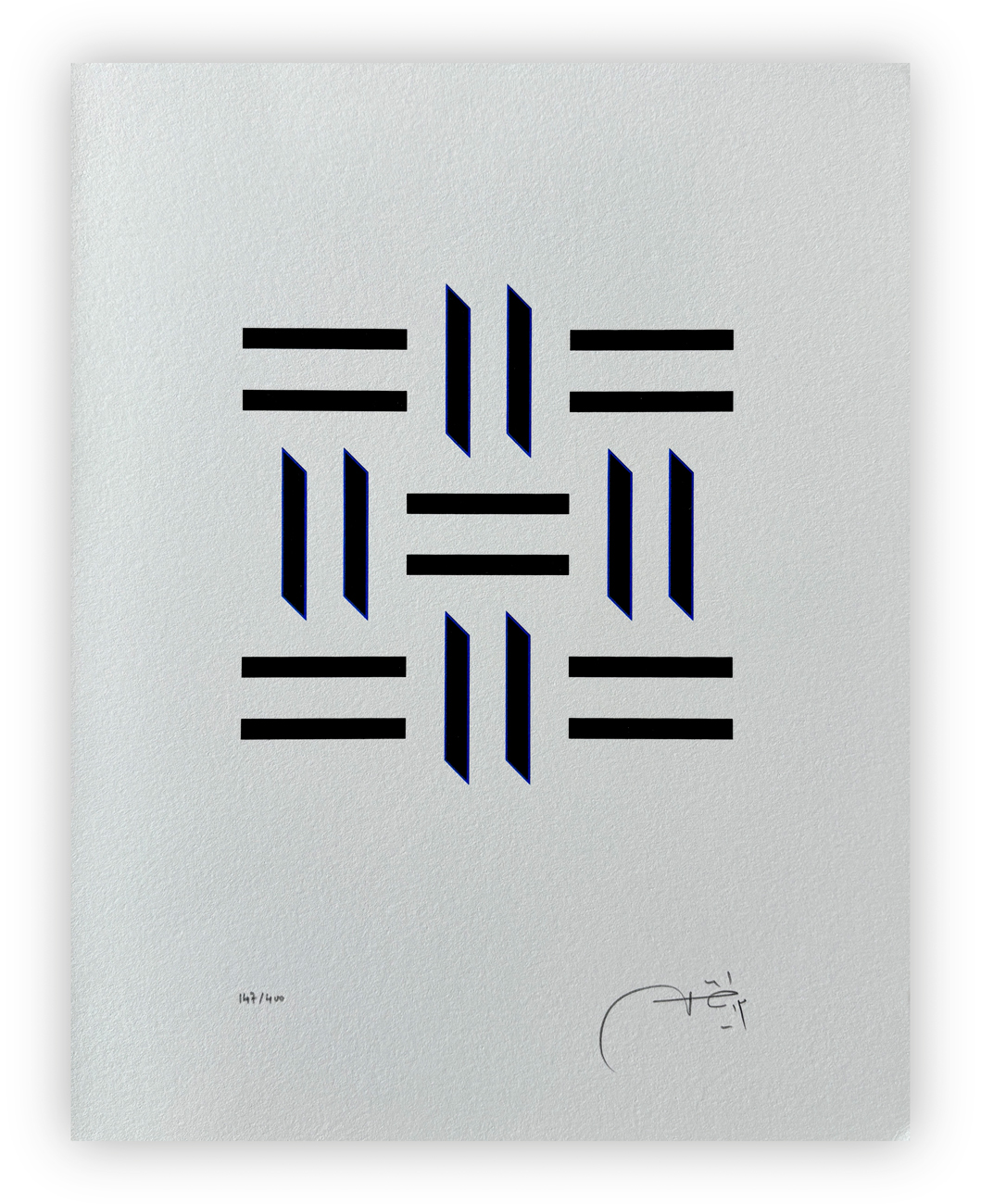Pieghevole augurale con una stampa di Medhi Moutashar edito da Denise René in 400 esemplari numerati (Esemplare 147/400)