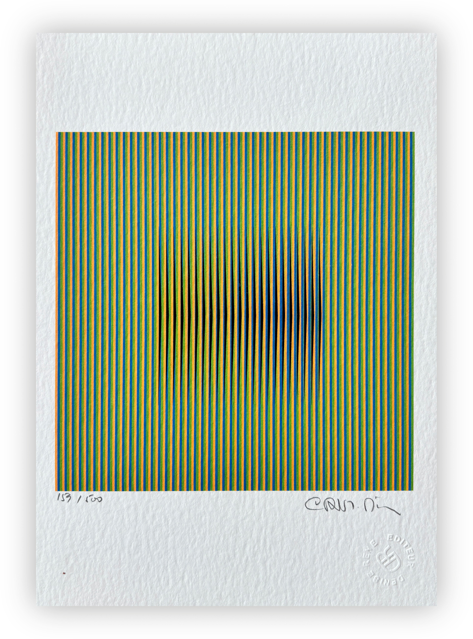 Pieghevole in carta da lucido contenente una stampa di Carlos Cruz-Diez edito da Denise René in 500 esemplari numerati (Esemplare 153/500)