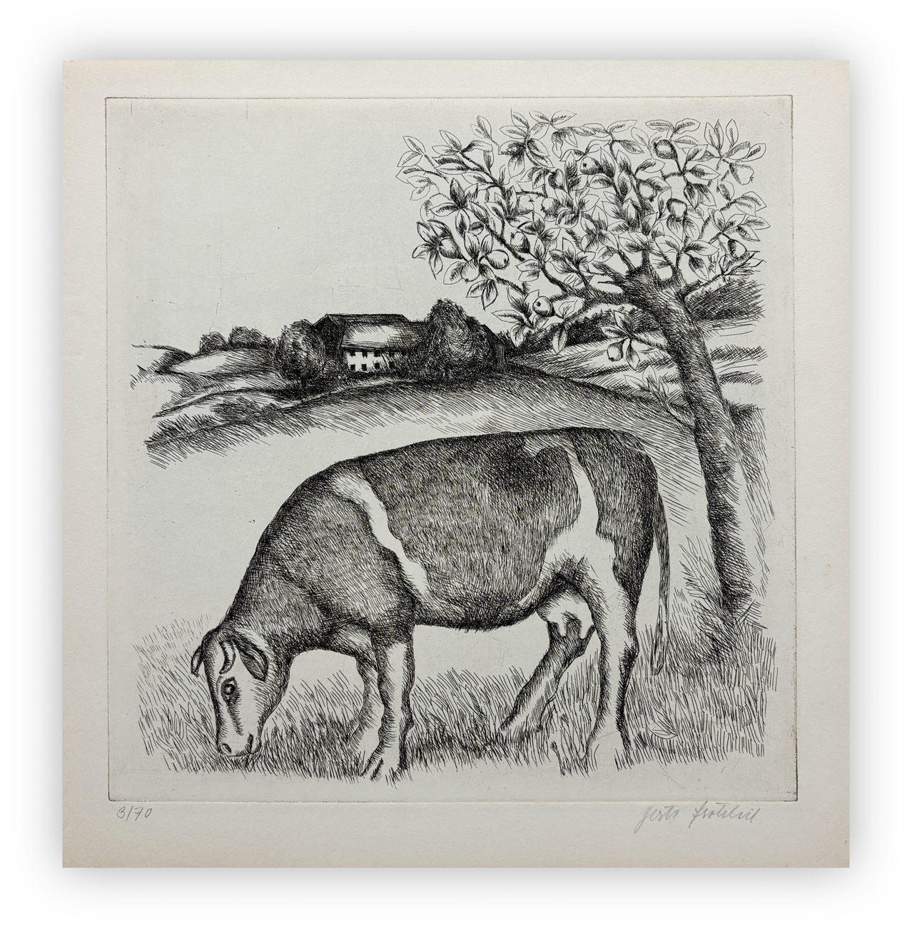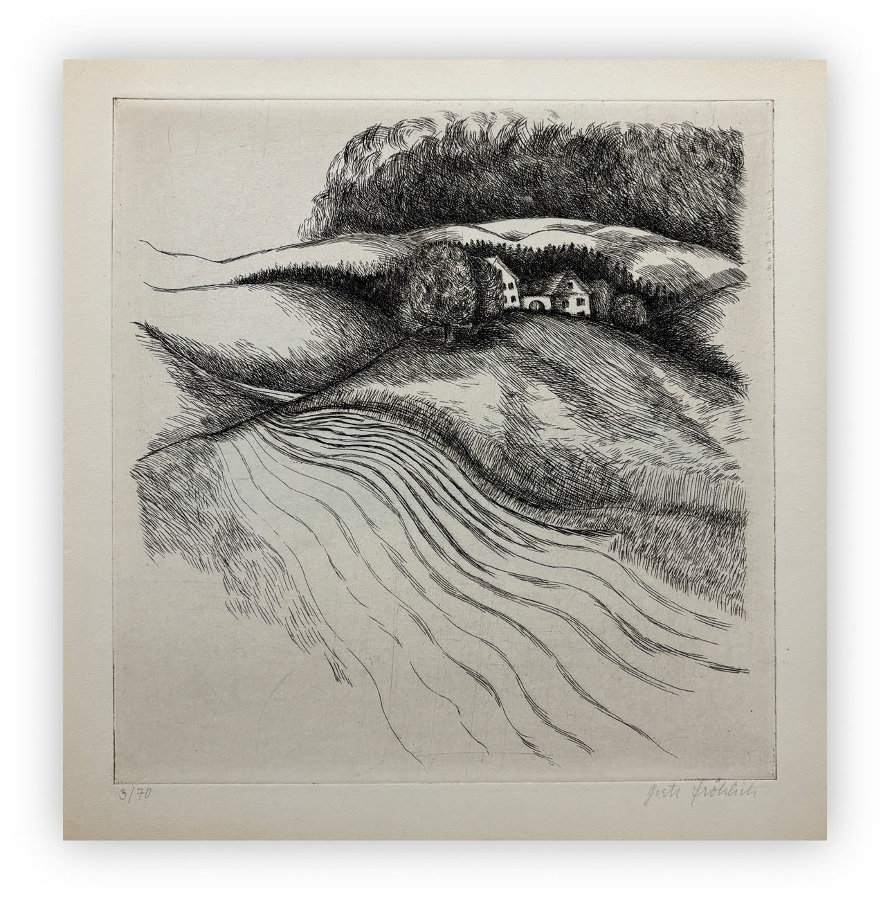 Firma e numerazione (Esemplare 3/70) a matita al fronte