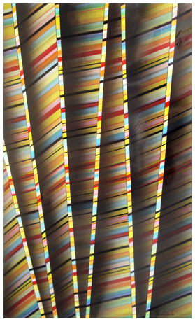 FERDINANDO COPPOLA Viareggio 1945 Luci e ombre T.m., aerografo e collage su cartone accoppiato a tavola 67 x 40. Firma in b. a d.; sul verso misure, firma e titolo + timbri studio dell’artista