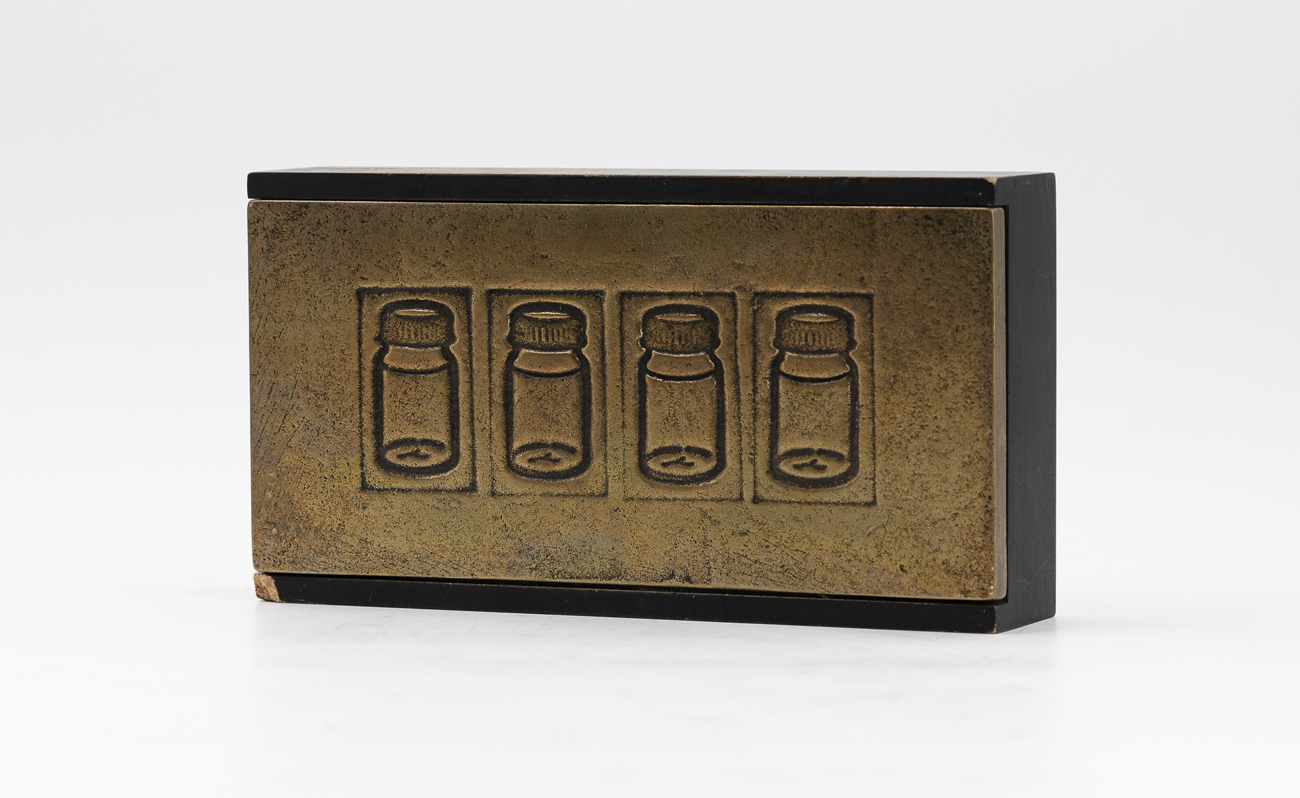 L'opera presenta una lieve mancanza all'angolo inferiore sinistro della tavola nera che racchiude la fusione in bronzo