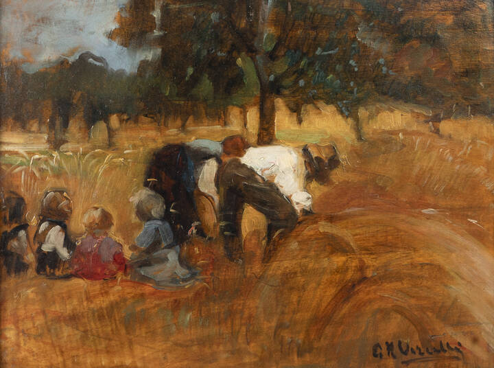 GIULIO ROMANO VERCELLI<BR>Marcorengo (TO) 1871 - 1951 Torino<BR>"Lavoro nei campi"